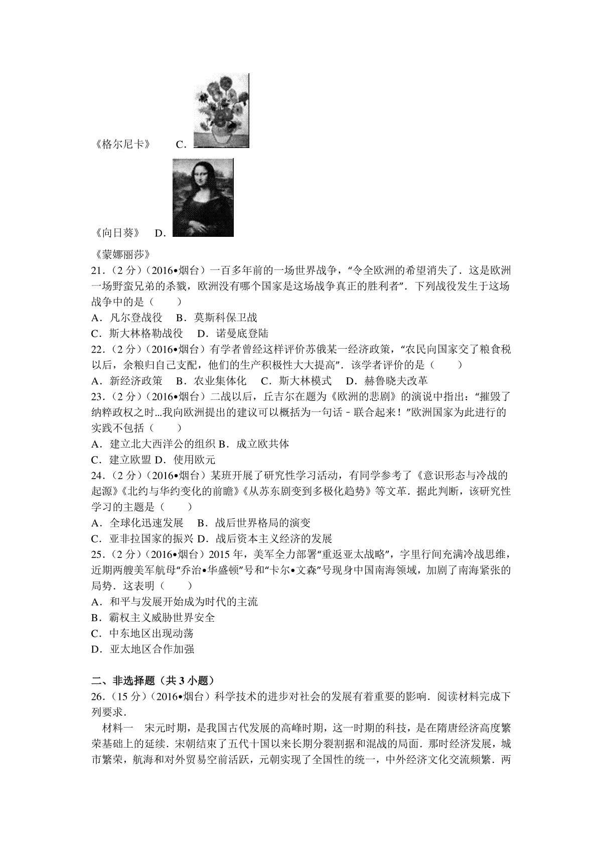 一、2016年山东烟台中考历史试卷及答案