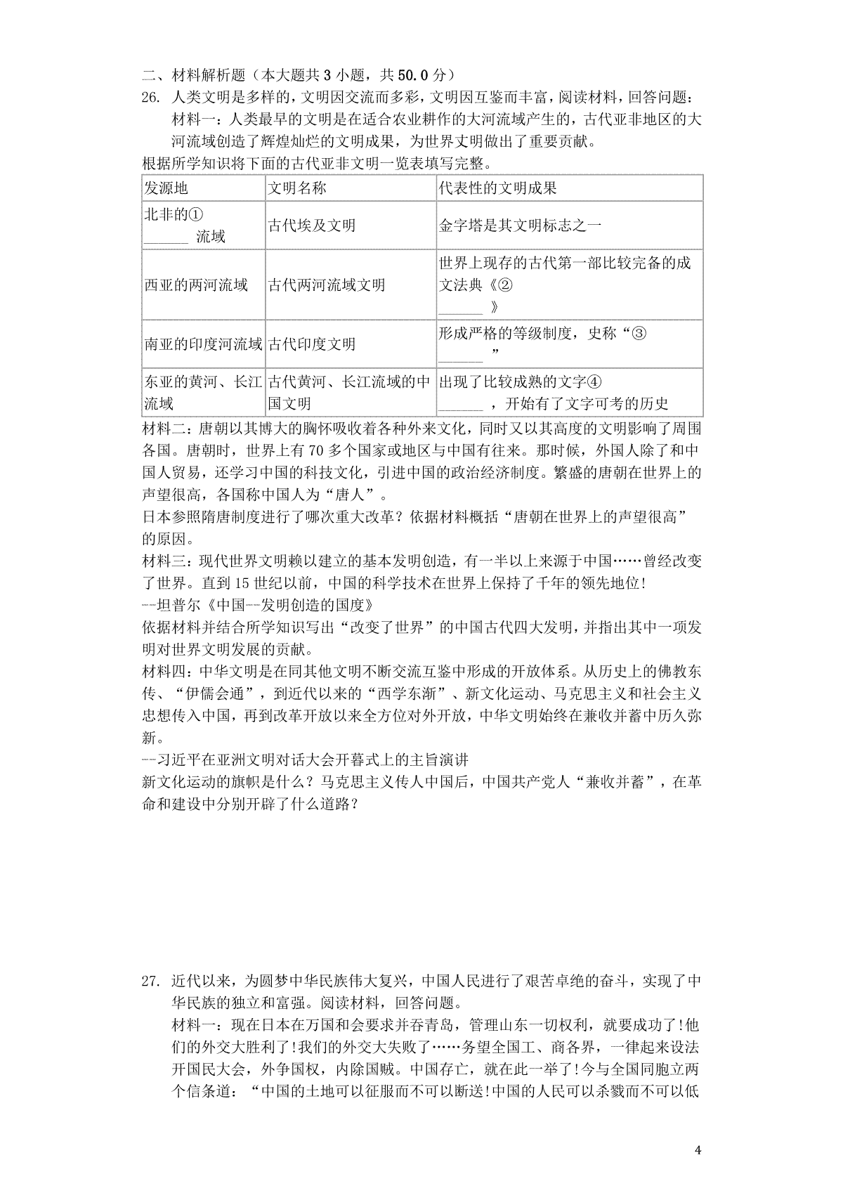 下载2019年山东烟台中考历史试卷及答案PDF格式或doc