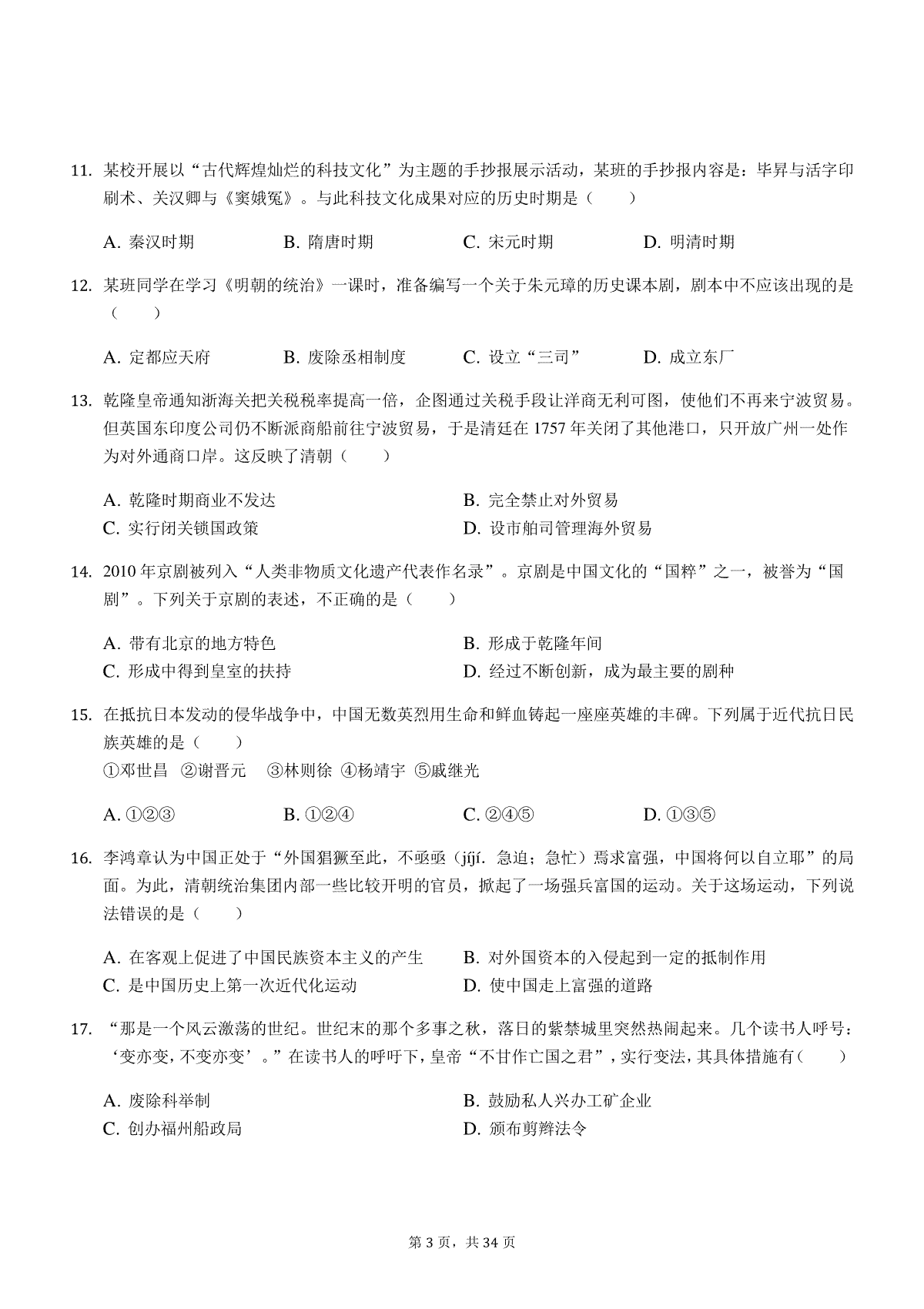 3.精品解析:2021年山东省菏泽市中考历史试题(原卷版)
