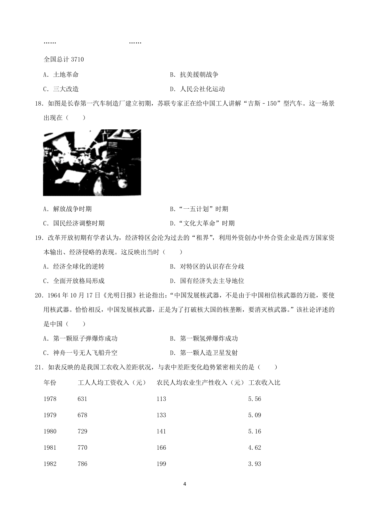 2021年安徽省历史中考试题及答案