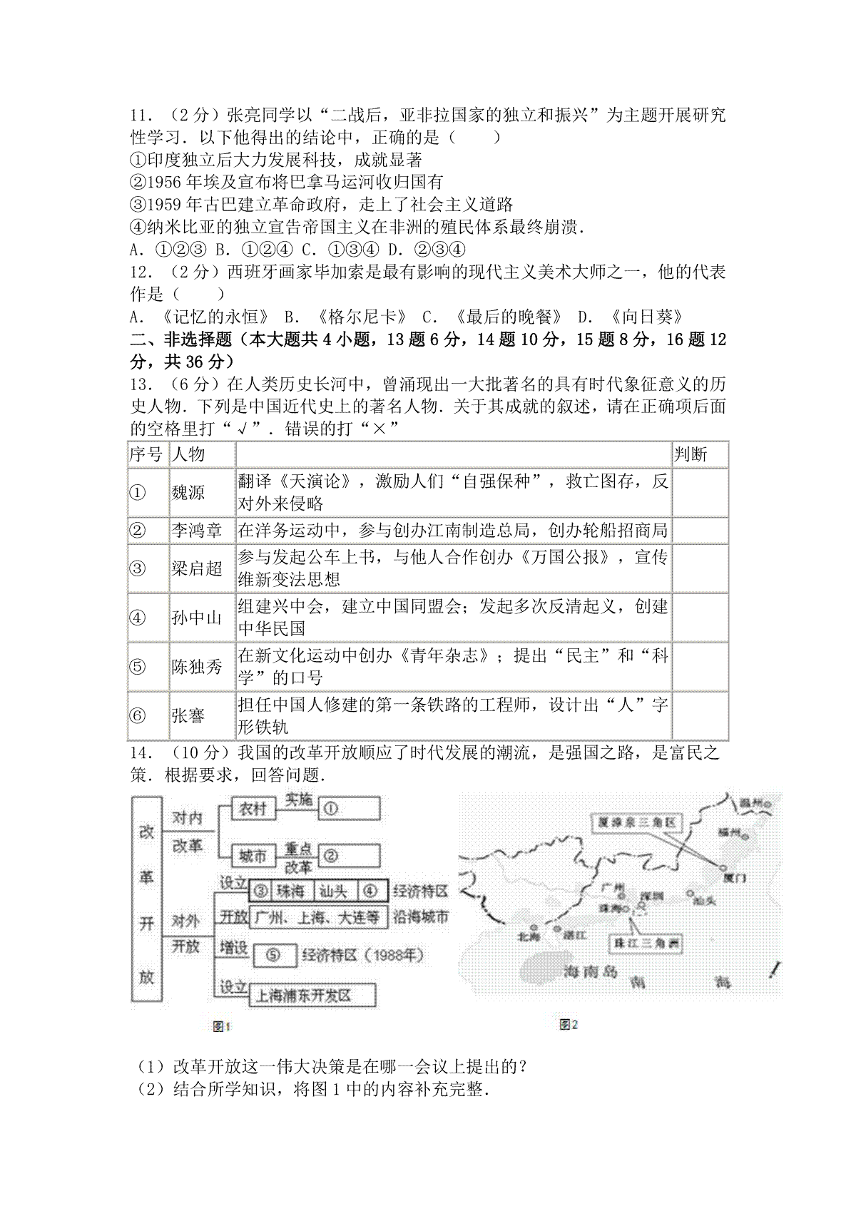一、2016年新疆自治区、生产建设兵团中考历史试卷及解析