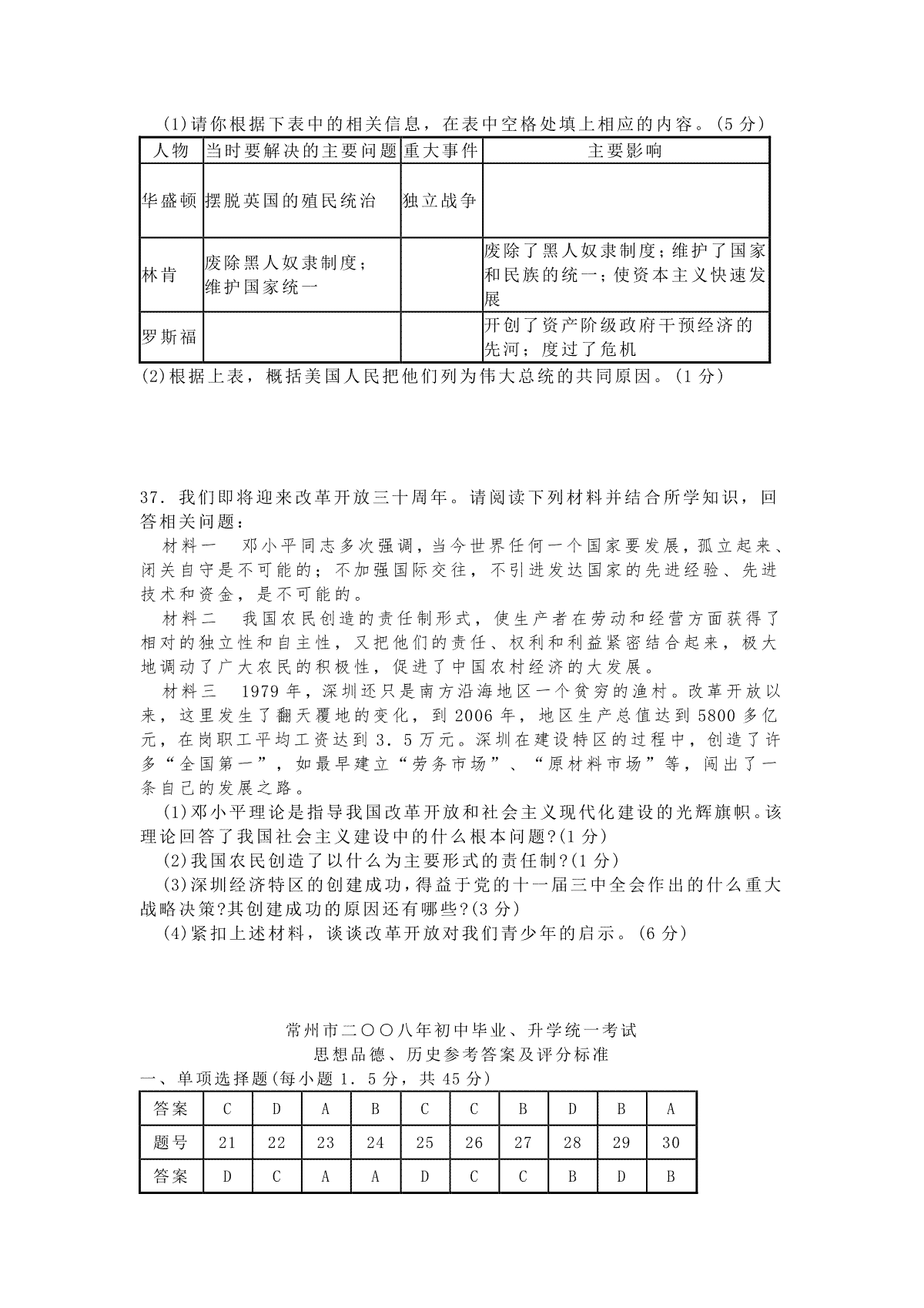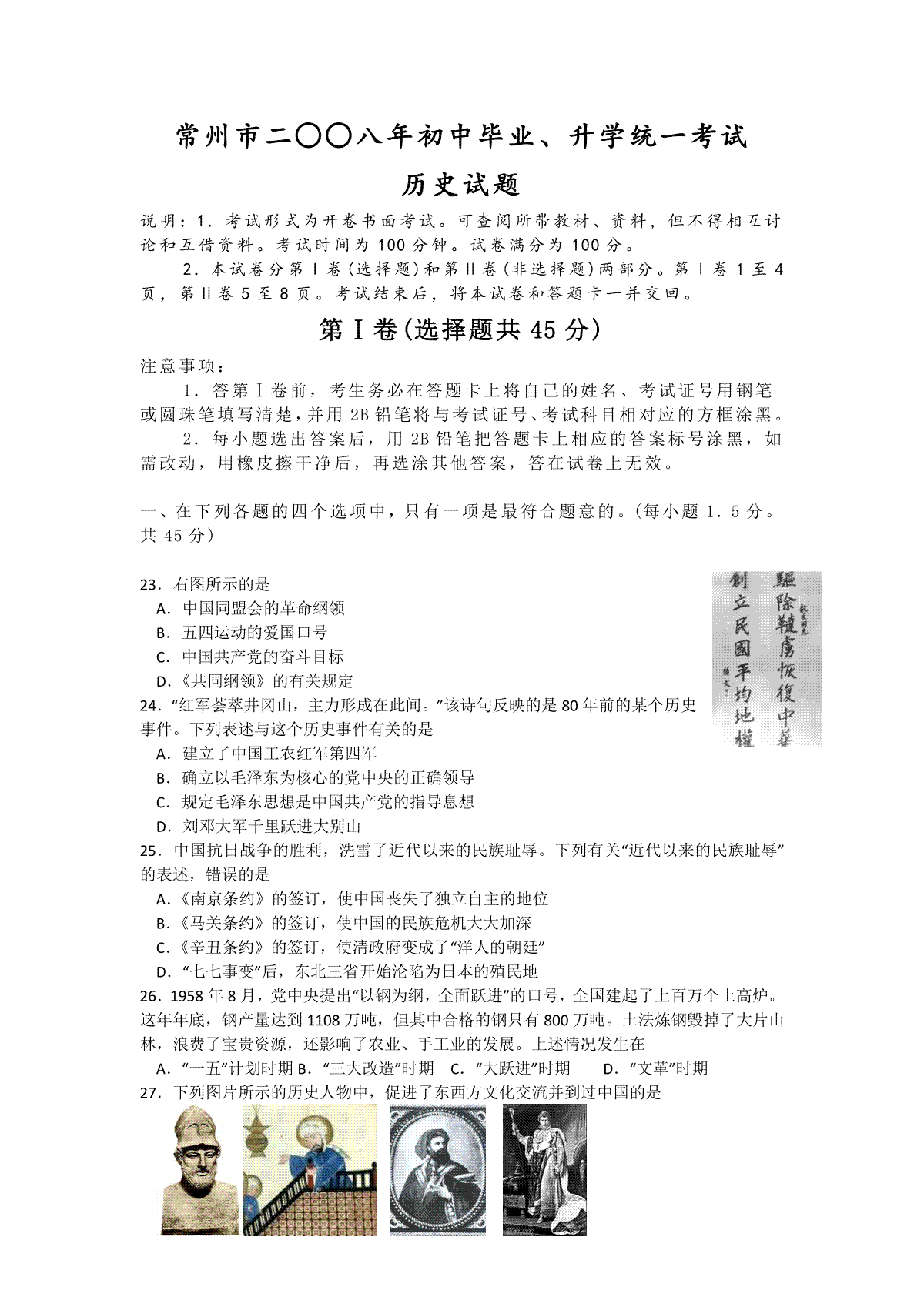 如果你想下载2008年江苏省常州市中考历史试题及答案DOC或PDF版,请点击本文末链接!
