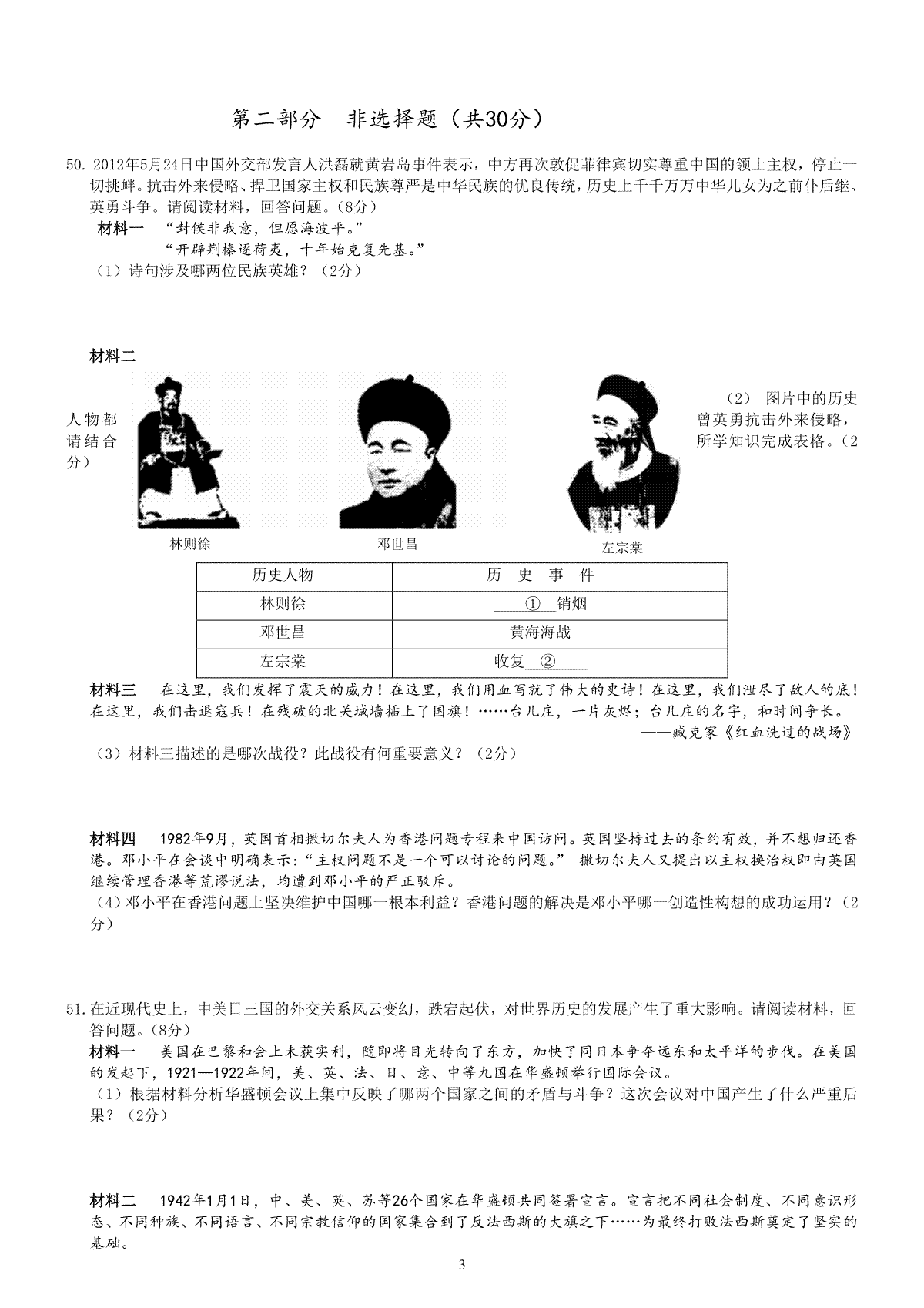2012年山东省东营市中考历史试题及答案