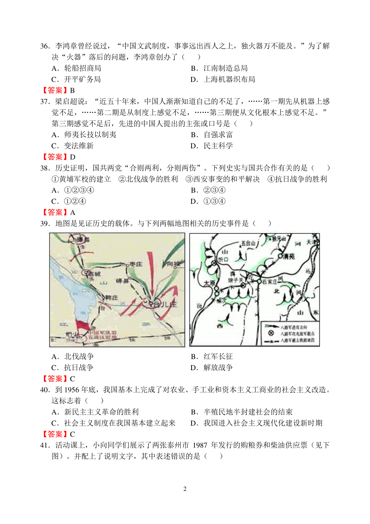 4.2012年江苏省泰州市中考历史试题及参考答案