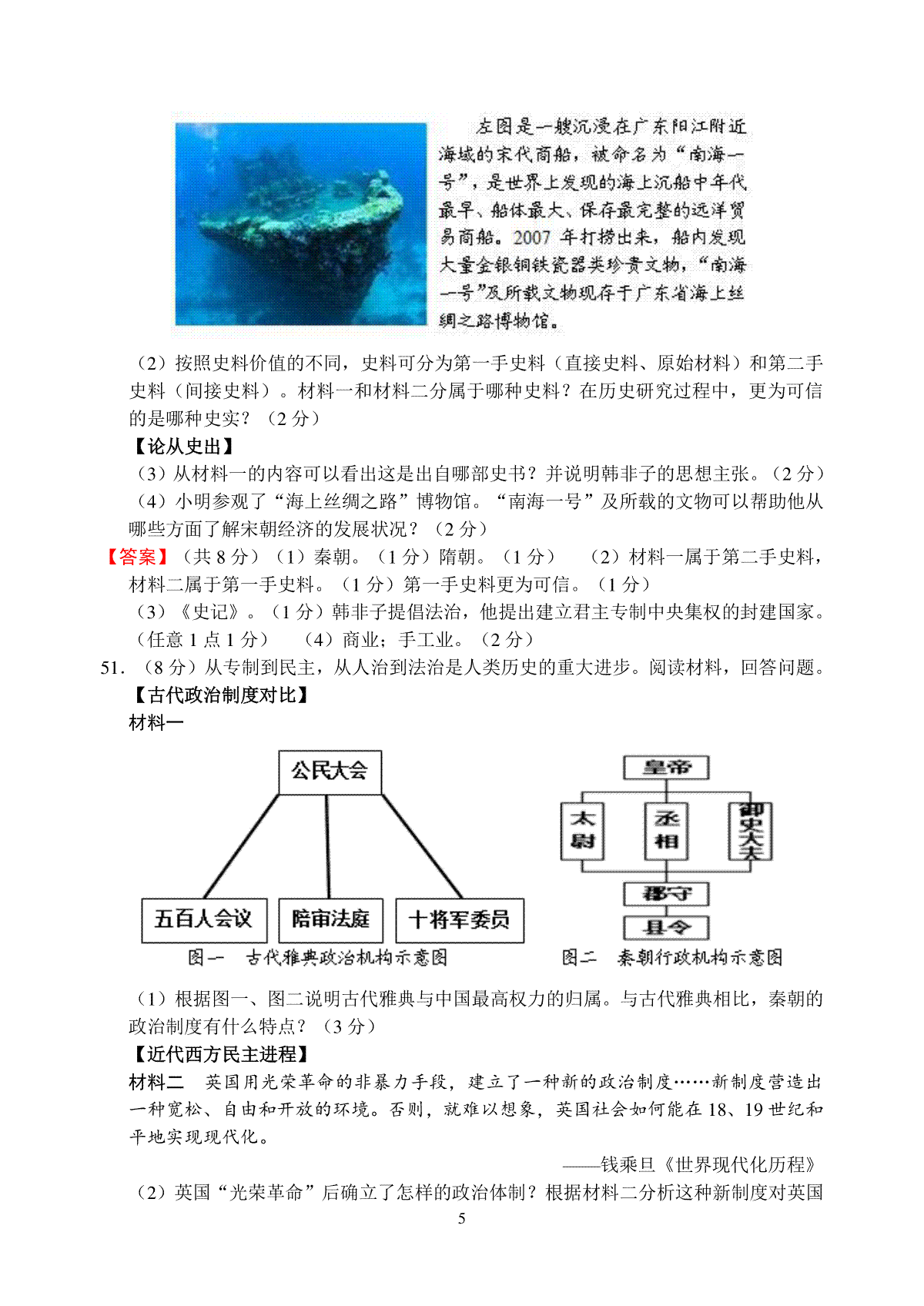 6.2010年江苏省泰州市中考历史试题及参考答案