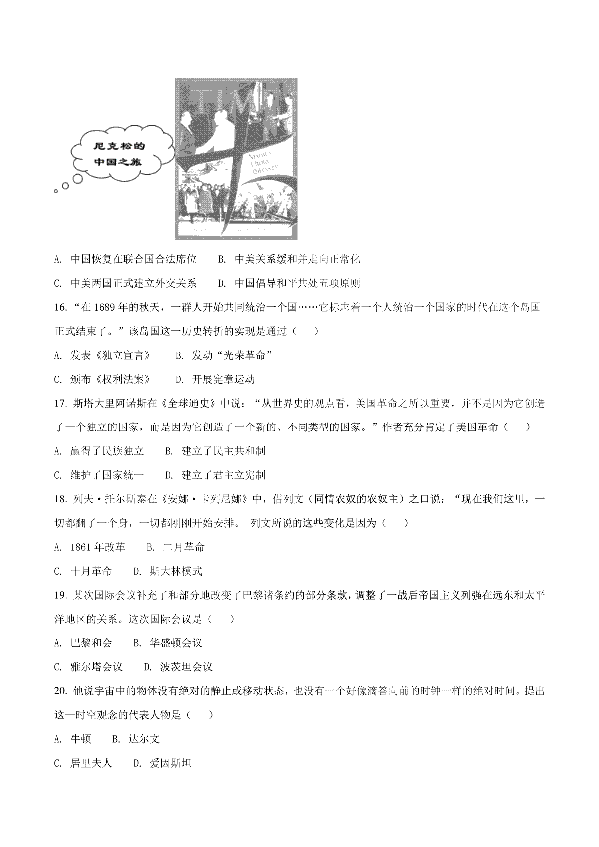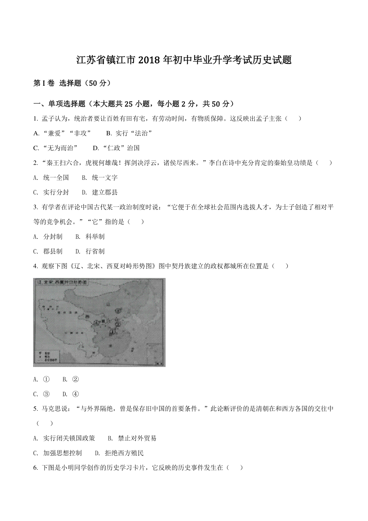 下载2018年江苏省镇江市中考历史试题及答案PDF格式或doc