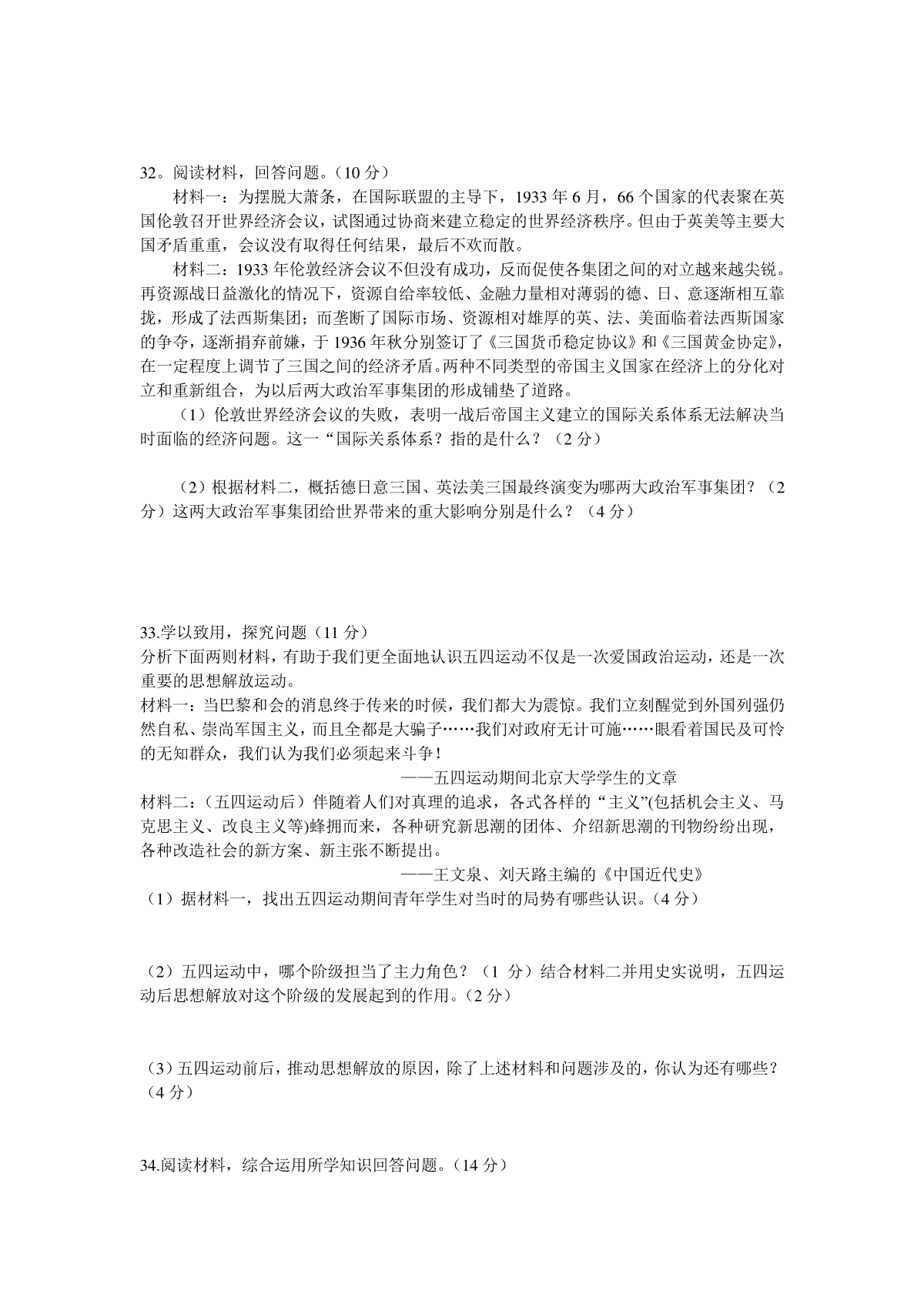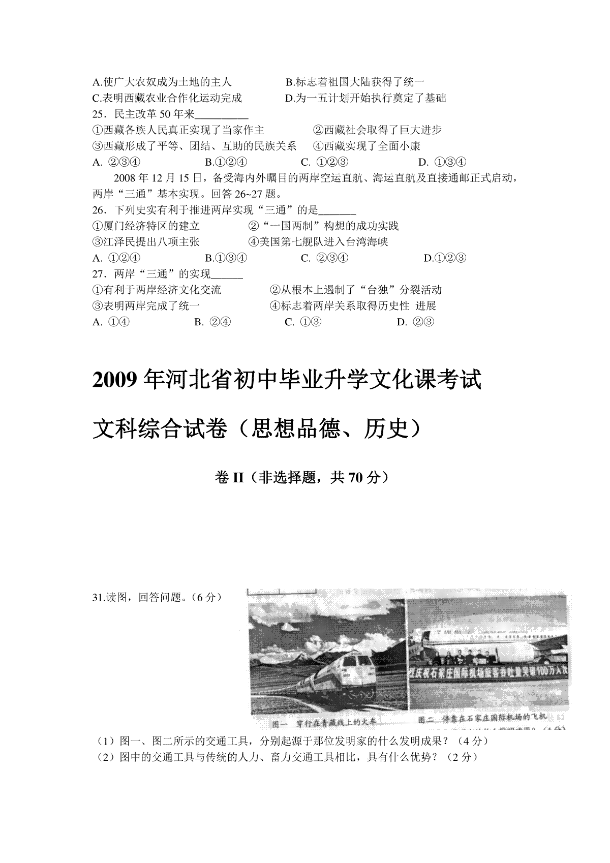 下载2009年河北省中考历史试题及答案PDF格式或doc
