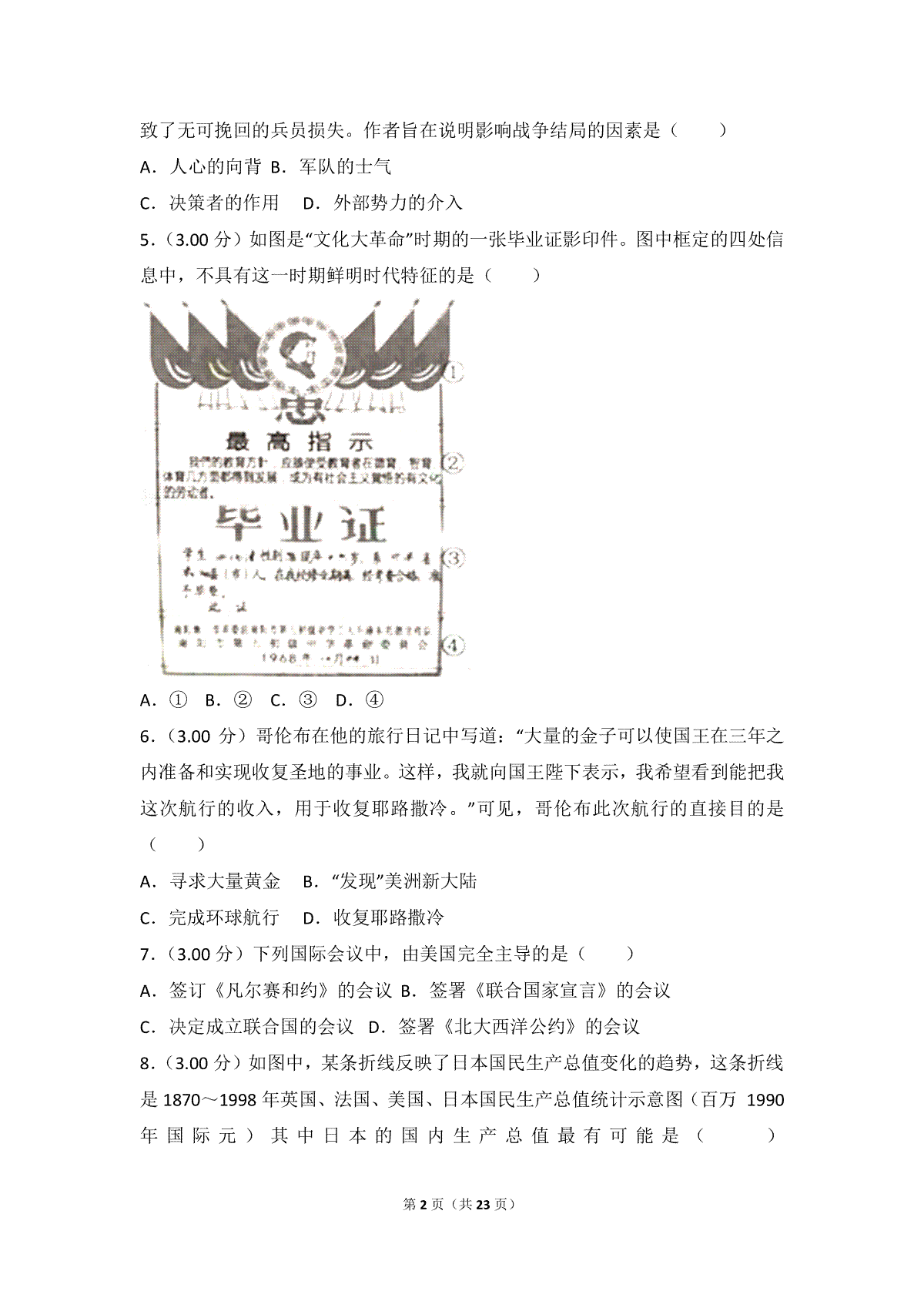 下载2018年河北省中考历史试题及答案PDF格式或doc