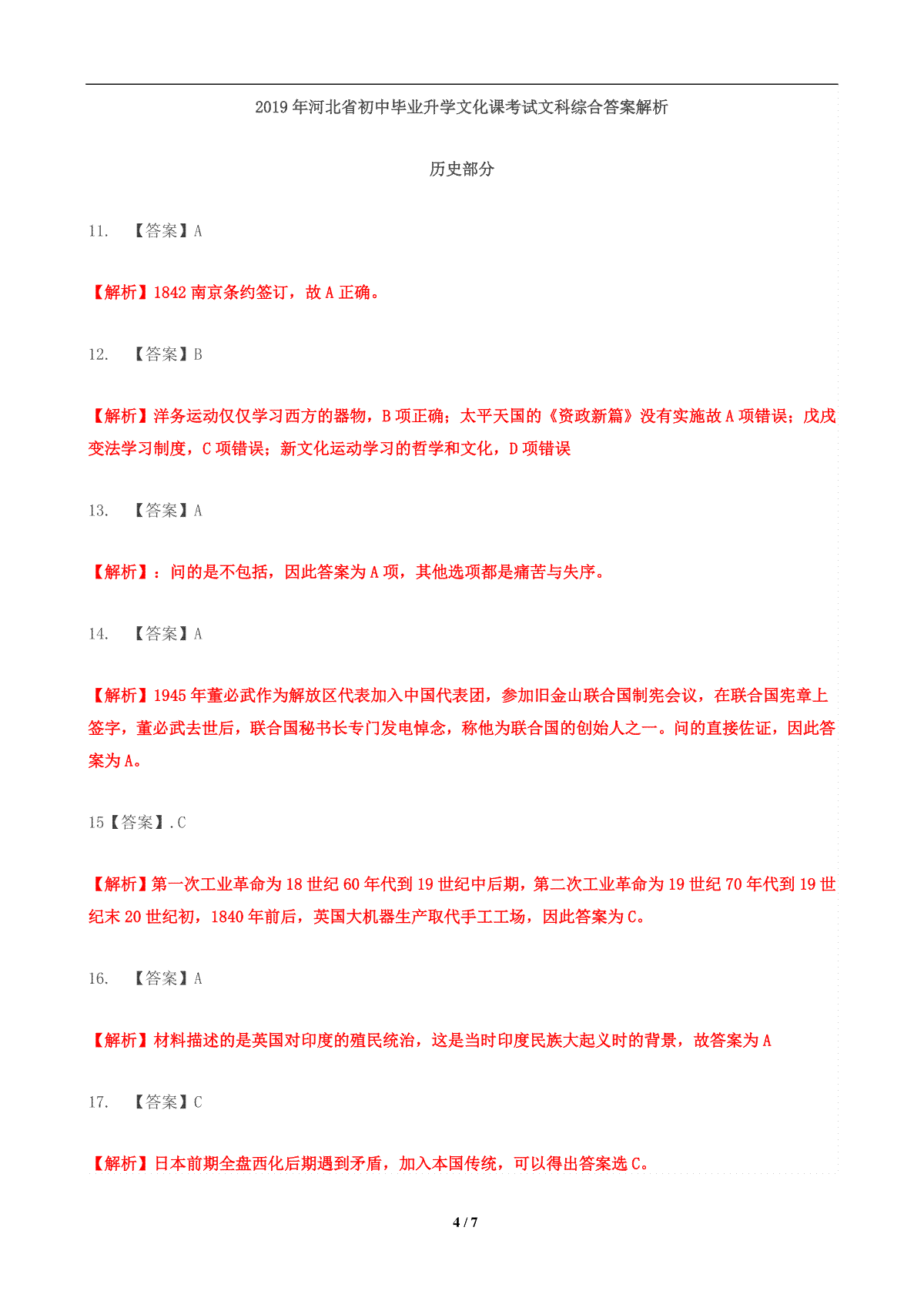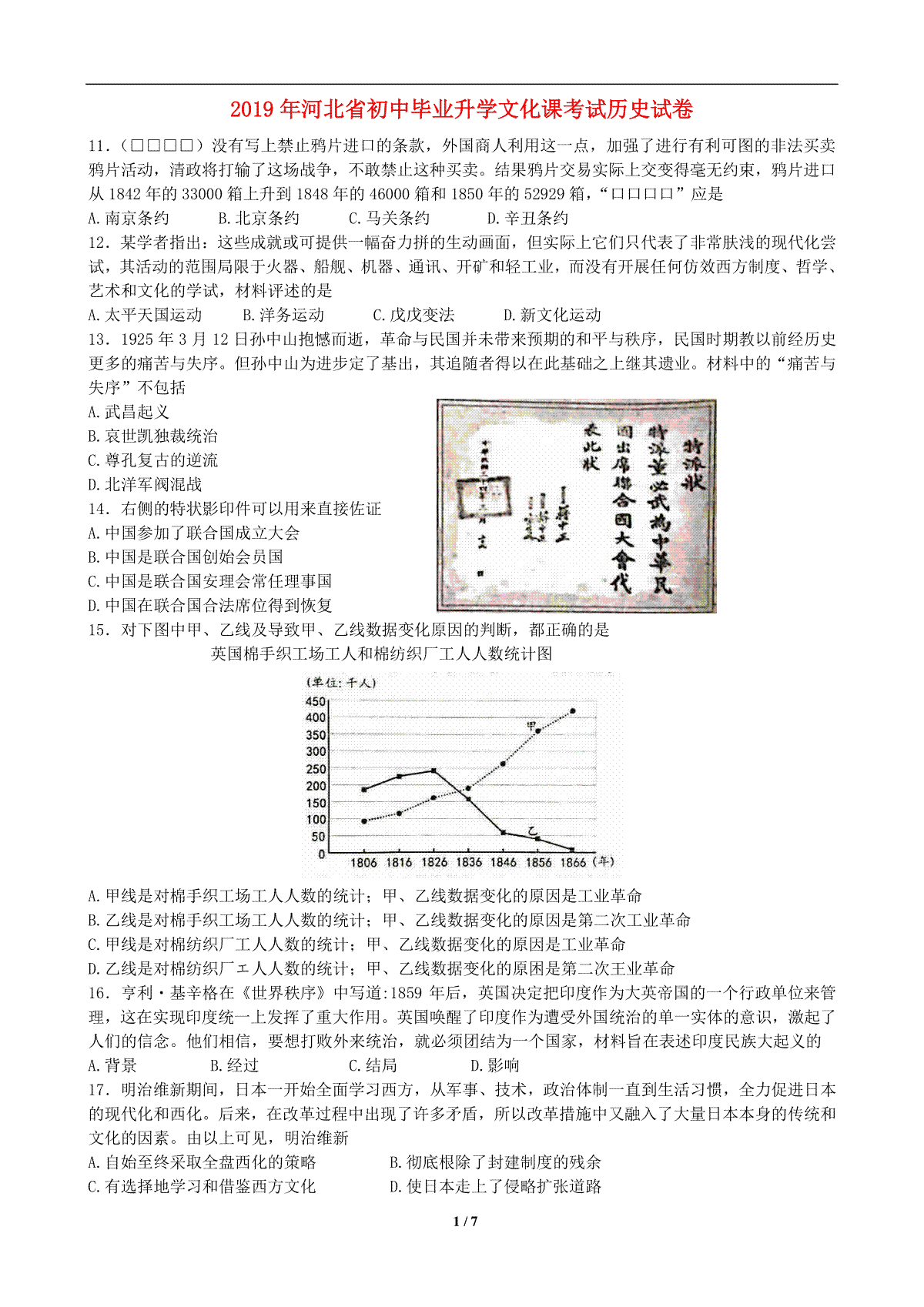 下载2019年河北省中考历史试题及答案PDF格式或doc