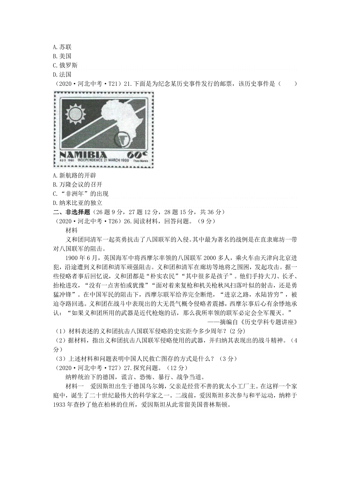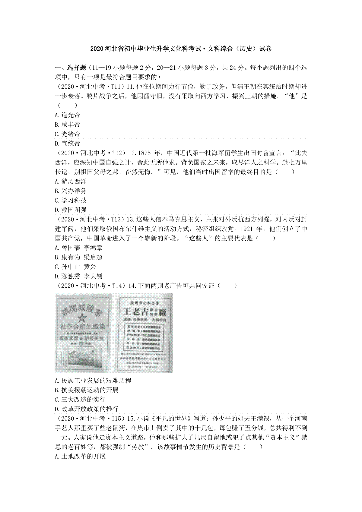 下载2020年河北省中考历史试题及答案PDF格式或doc
