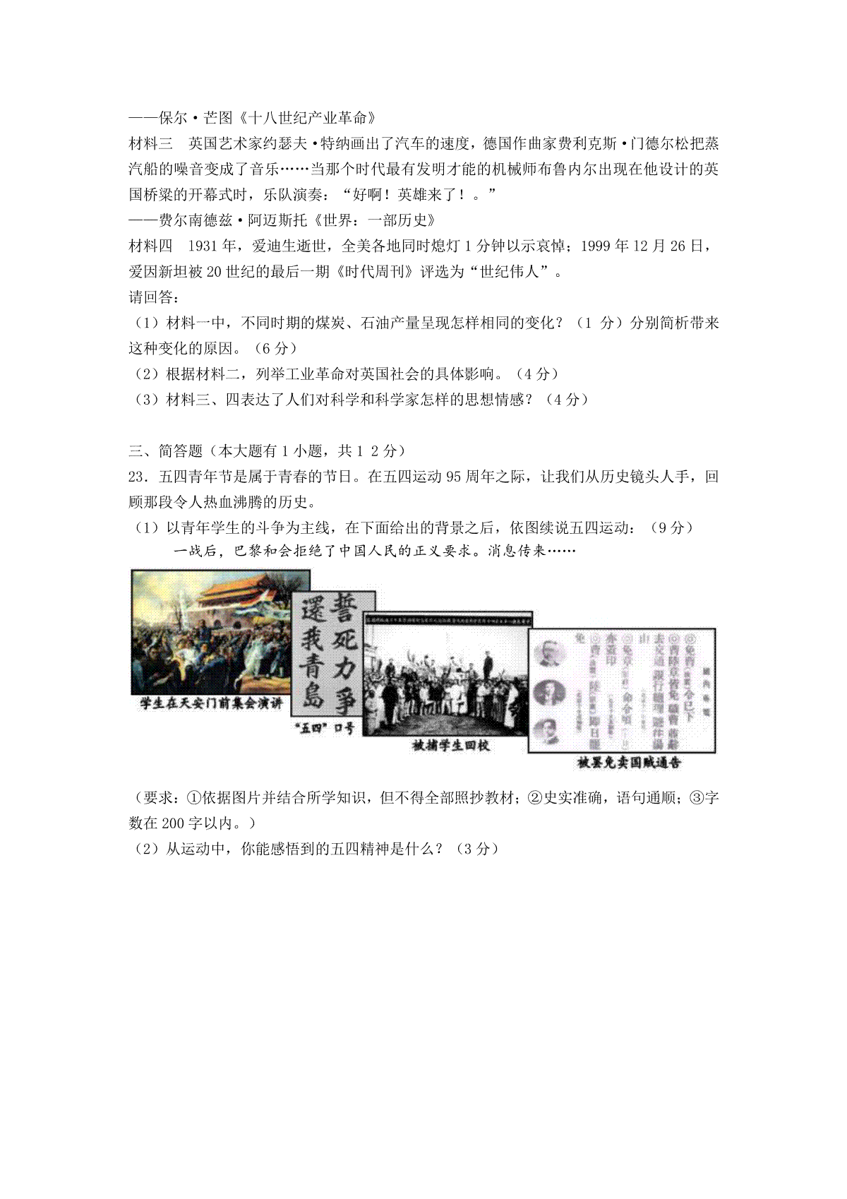 2020年安徽省历史中考试题及答案