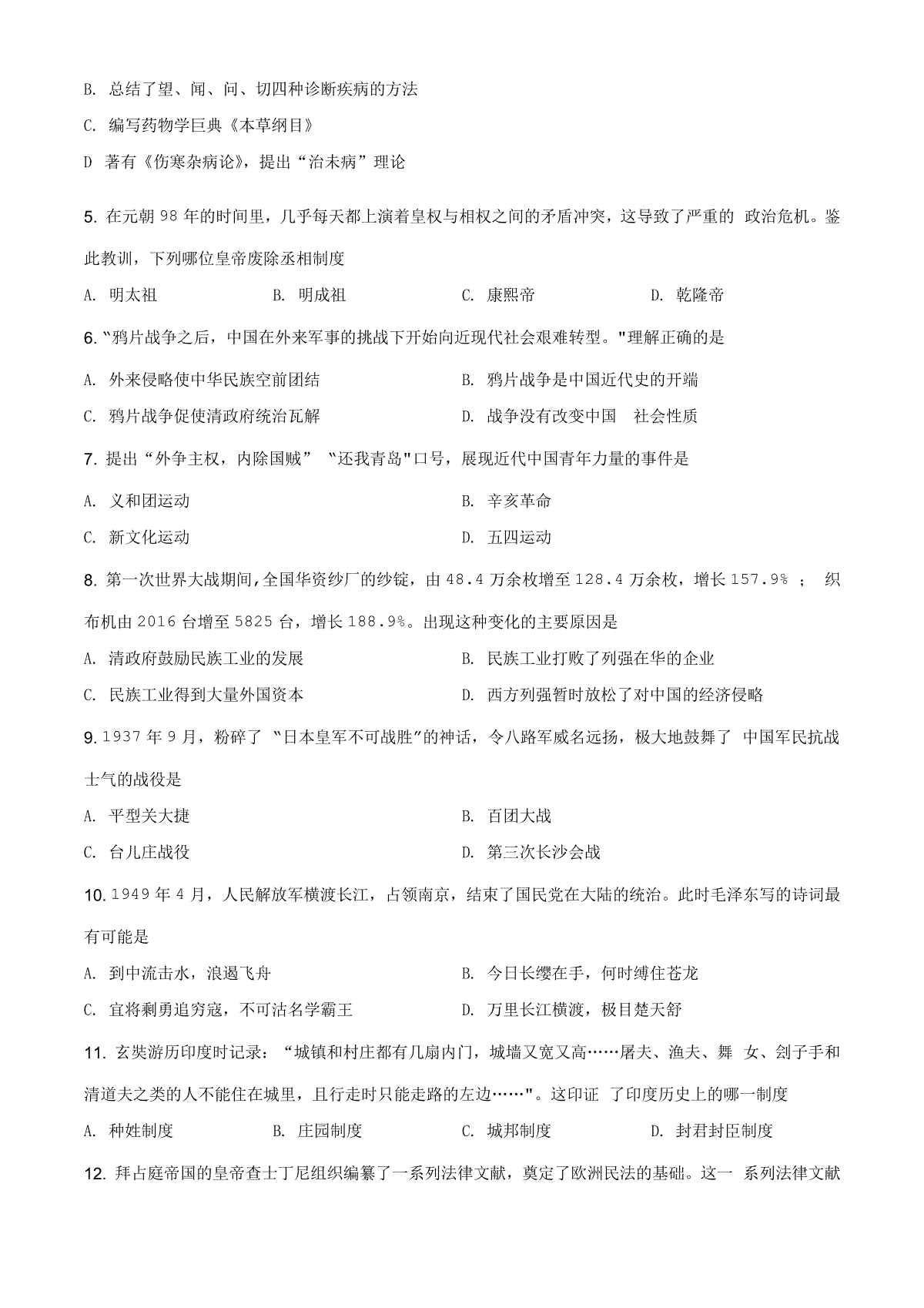 2.2019年湖南省娄底市中考历史试题及答案解析