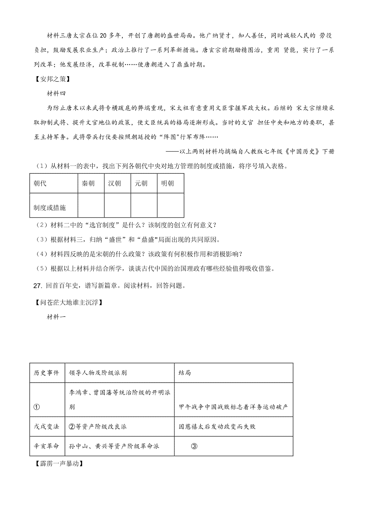 6.2021年湖南省株洲市中考历史试题(word版,有答案)