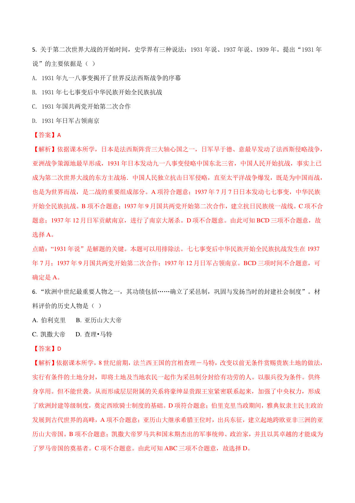 如果你想下载2018年长沙市-中考-历史试题及答案DOC或PDF版,请点击本文末链接!