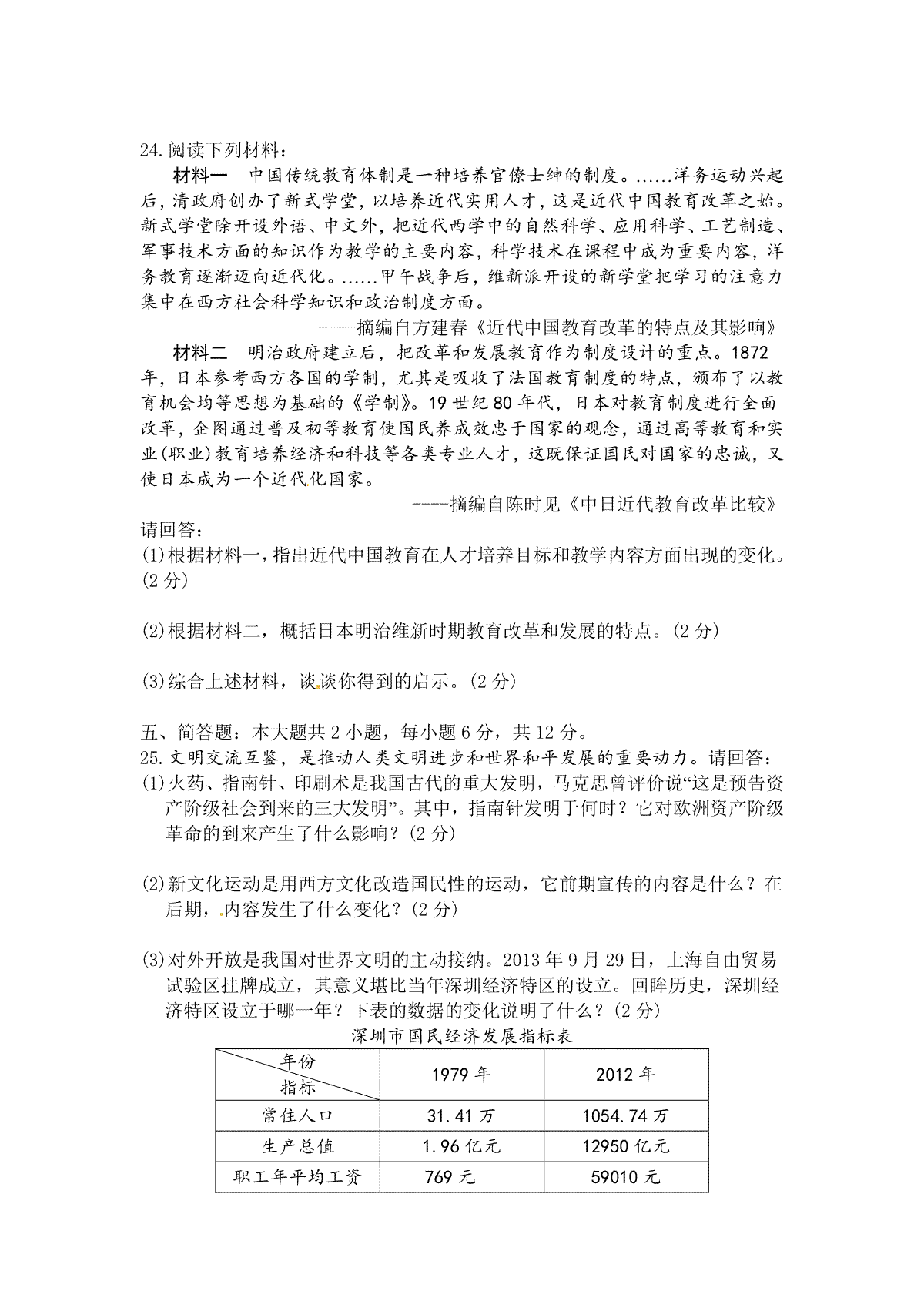 3.2013年重庆市中考历史A卷试卷(含答案)