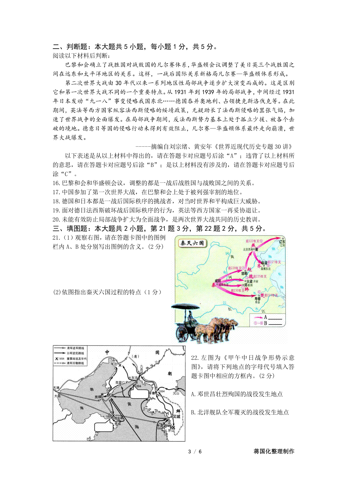 2.2014年重庆市中考历史B卷试卷(含答案)