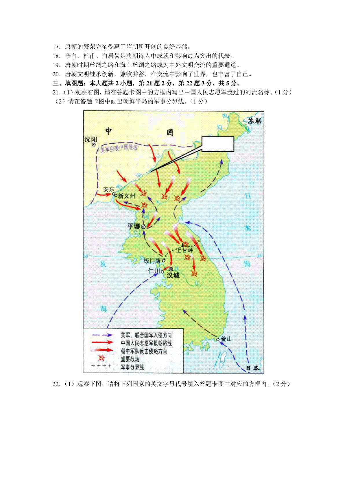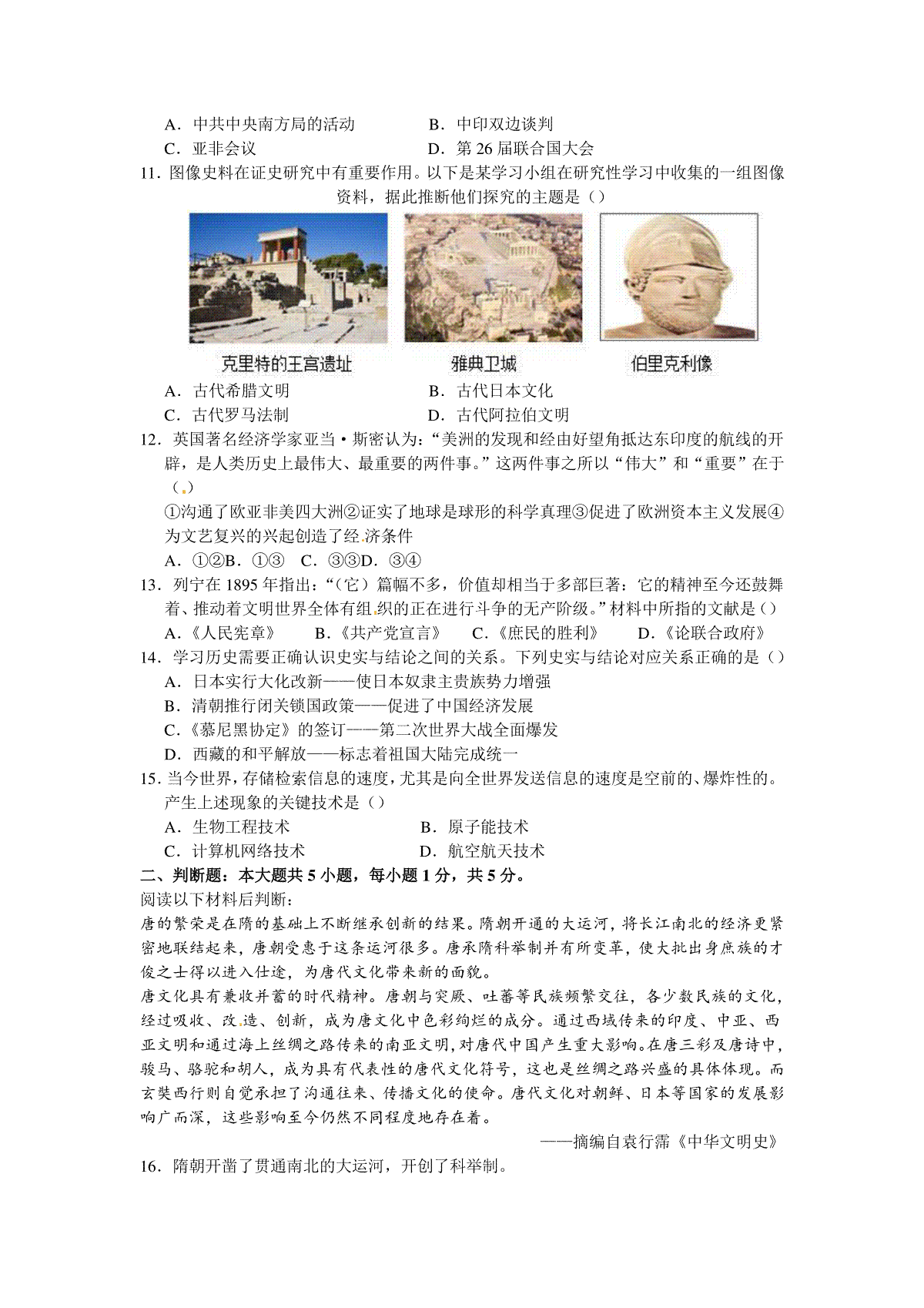 3.2015年重庆市中考历史A卷试卷(含答案)