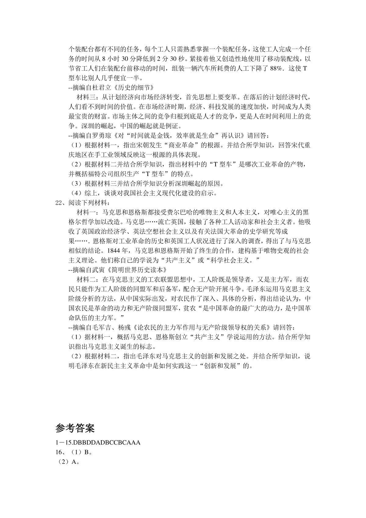 5.2016年重庆市中考历史A卷试卷(含答案)