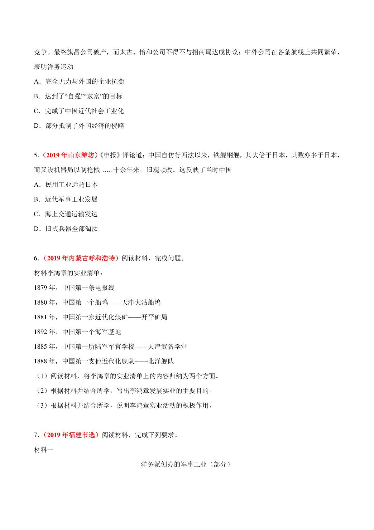 1.专题08 近代化的早期探索与民族危机的加剧(第01期)-2019年中考真题历史试题分项汇编(原卷版)