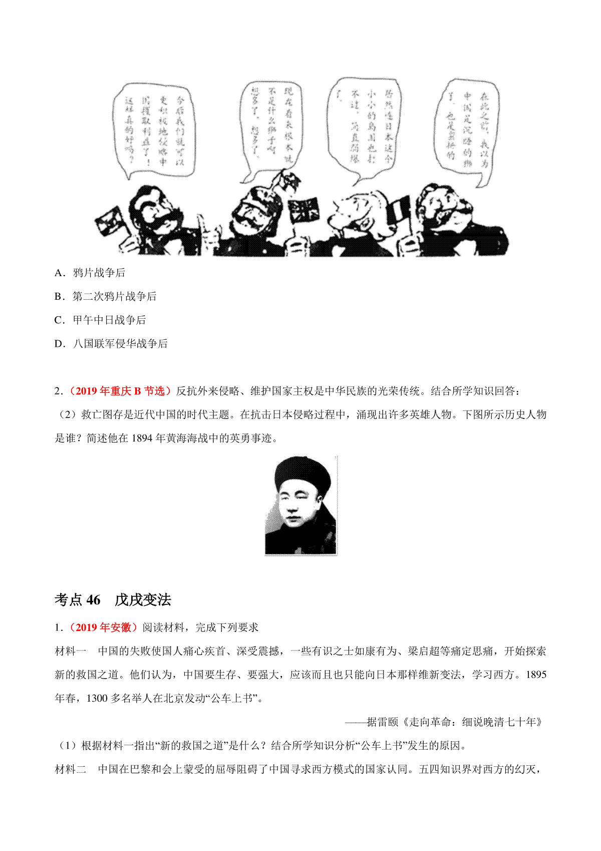 一、专题08 近代化的早期探索与民族危机的加剧(第01期)-2019年中考真题历史试题分项汇编(原卷版)