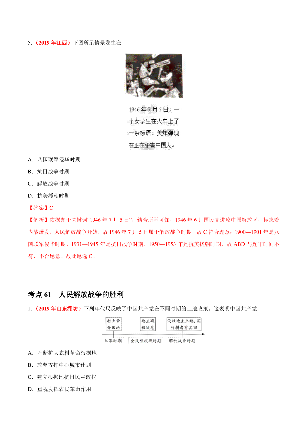一、专题13 解放战争(第01期)-2019年中考真题历史试题分项汇编(解析版)