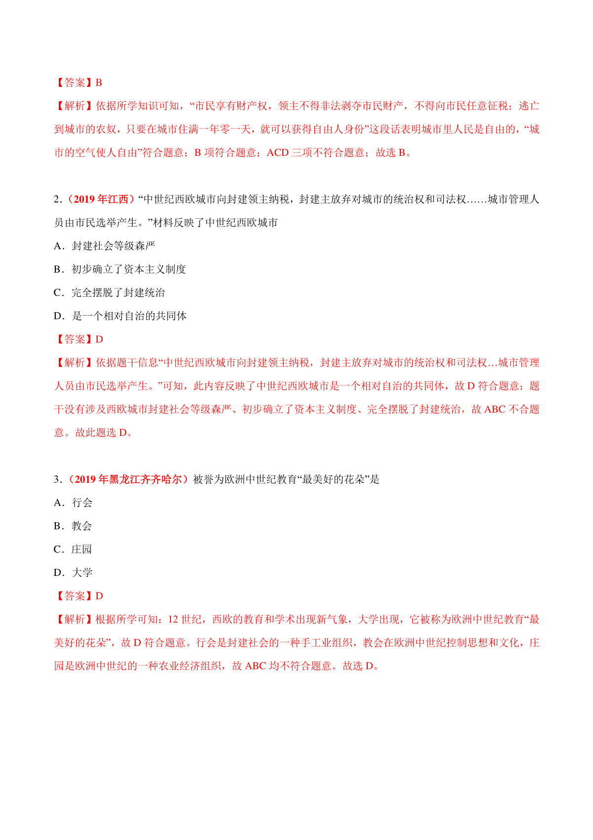 一、专题21 封建时代的欧洲和亚洲国家(第01期)-2019年中考真题历史试题分项汇编(解析版)