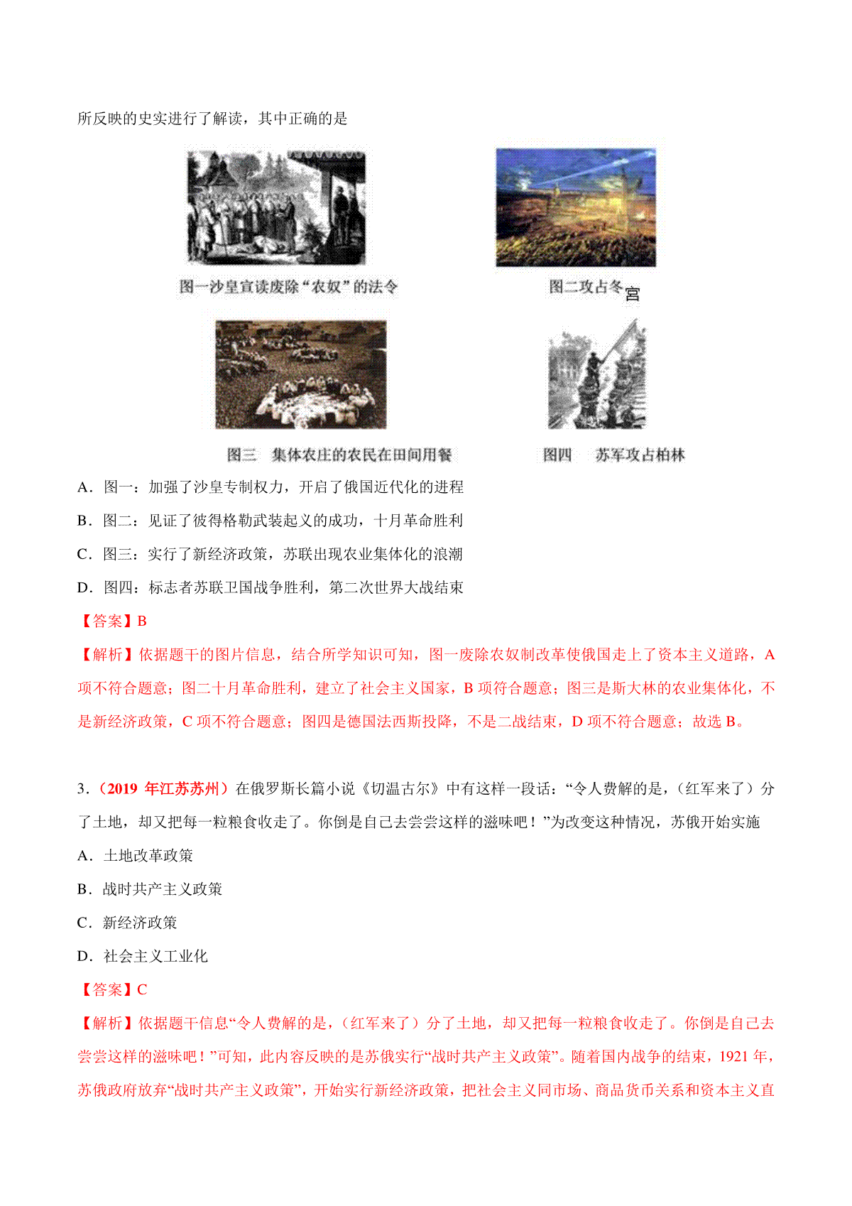 如果你想下载专题27 第一次世界大战和战后初期的世界(第01期)-2019年中考真题历史试题分项汇编(解析版)DOC或PDF版,请点击本文末链接!