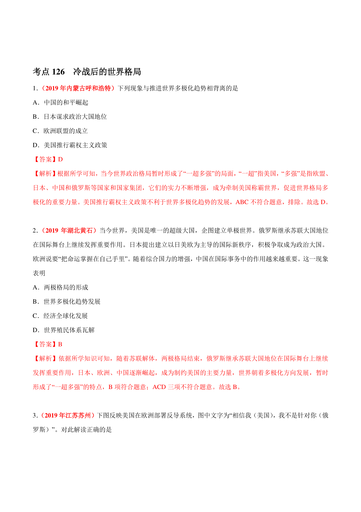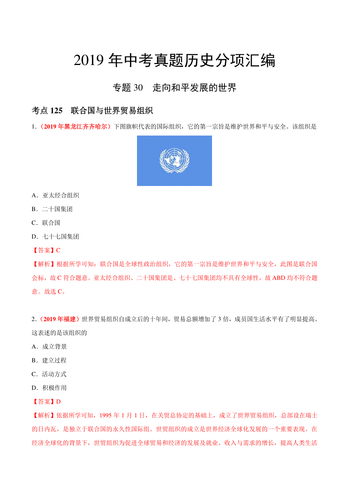 一、专题30 走向和平发展的世界(第01期)-2019年中考真题历史试题分项汇编(解析版)
