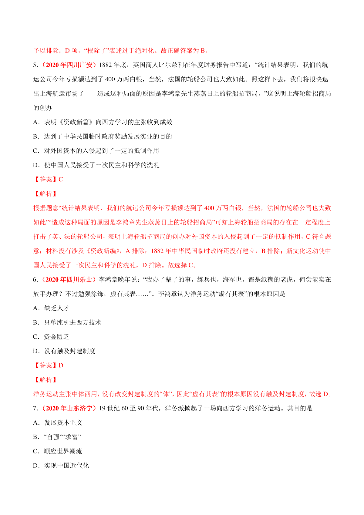 一、专题08 近代化的早期探索与民族危机的加剧(第01期)-2020年中考历史真题分项汇编(解析版)