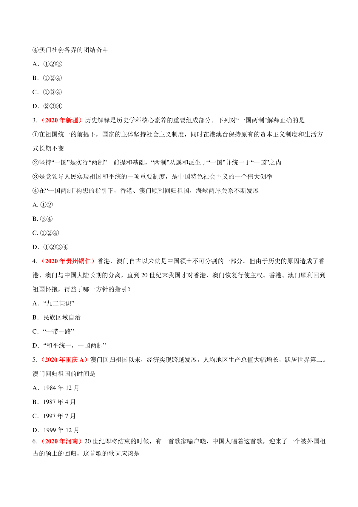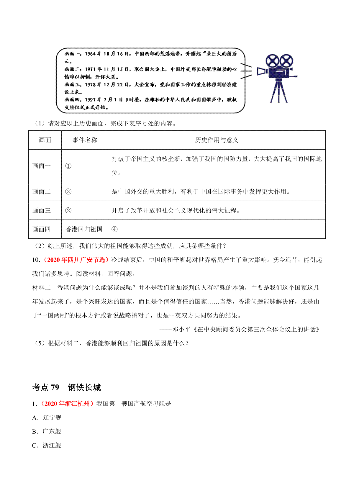 下载专题18 民族团结与祖国统一、国防建设与外交成就(第01期)-2020年中考历史真题分项汇编(原卷版PDF格式或doc