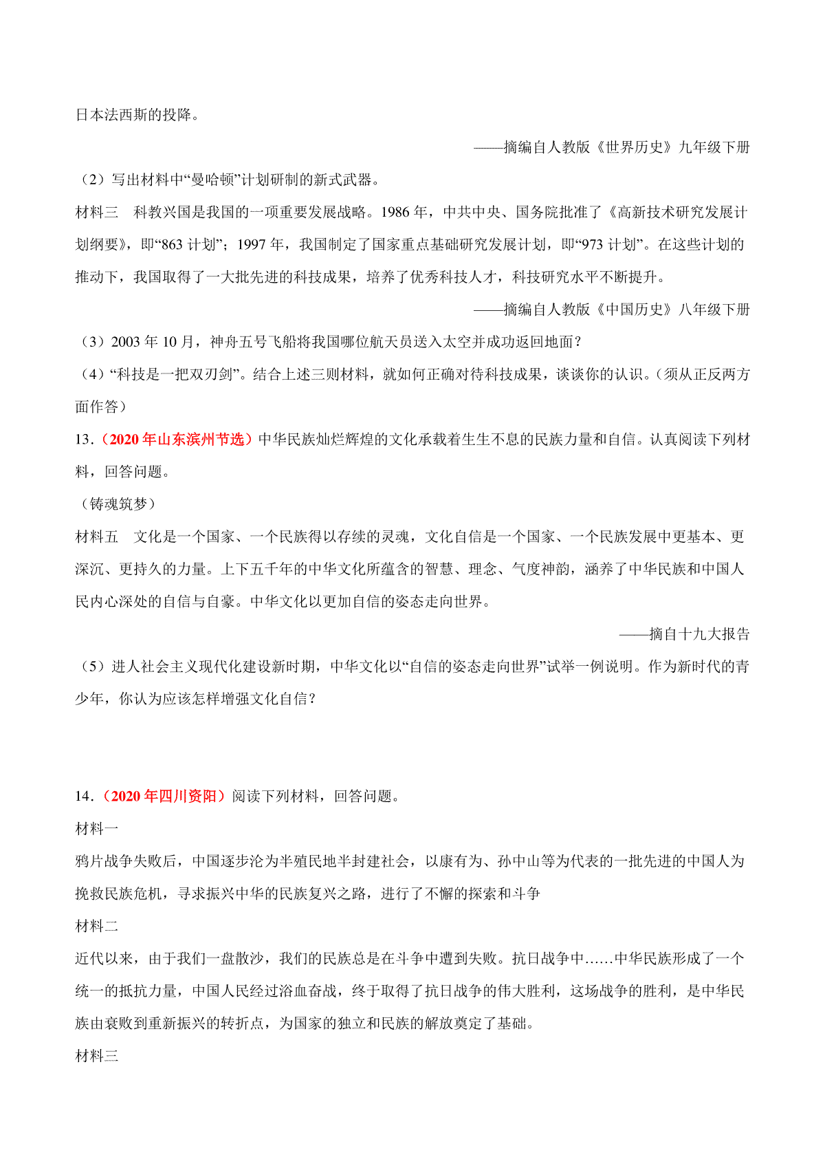1.专题19 现代科技文化与社会生活(第01期)-2020年中考历史真题分项汇编(原卷版)