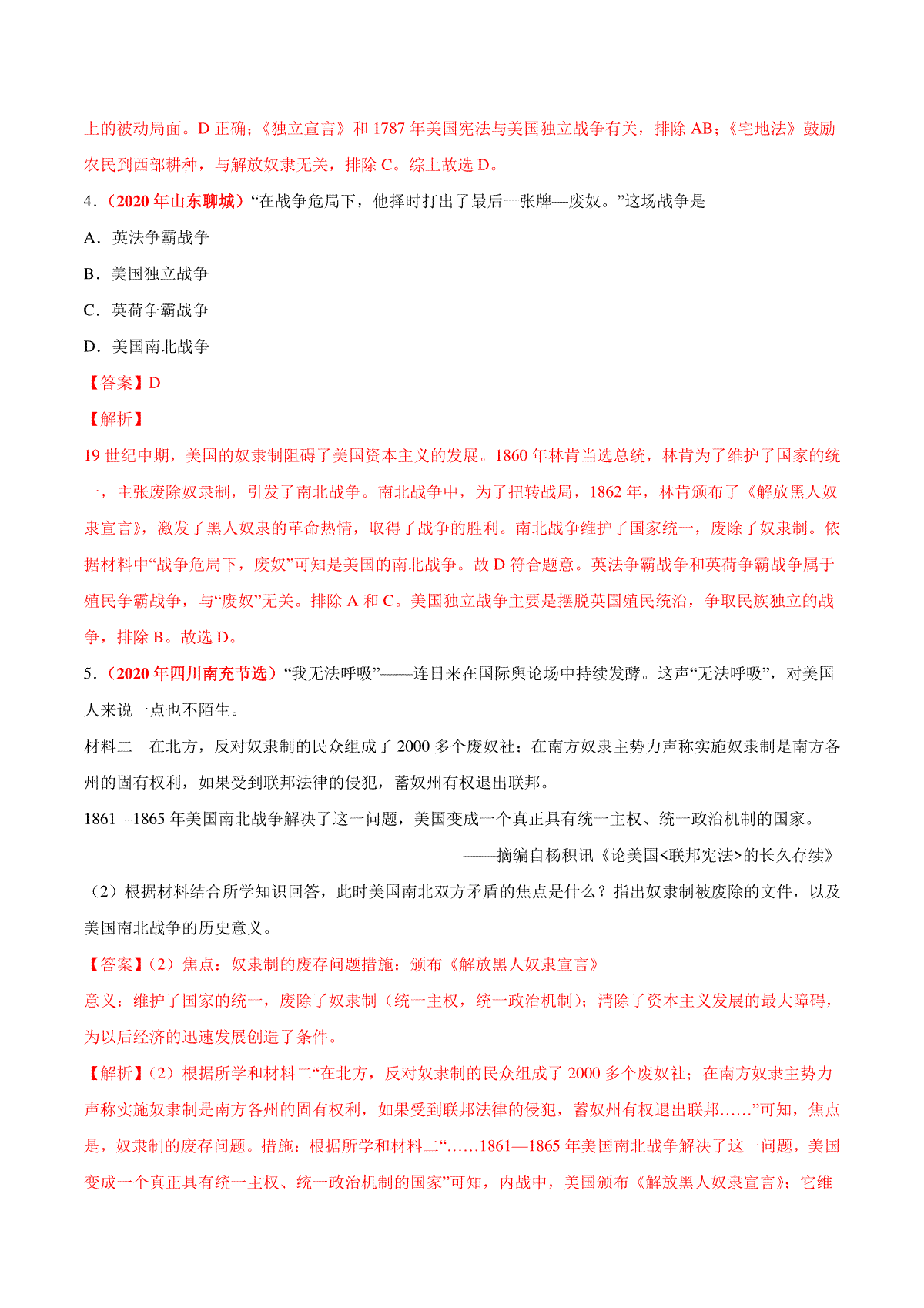 一、专题23 资本主义制度的扩展(第01期)-2020年中考历史真题分项汇编(解析版)