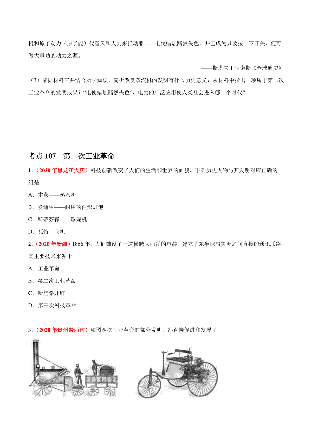 如果你想下载专题24 工业革命(第01期)-2020年中考历史真题分项汇编(原卷版)DOC或PDF版,请点击本文末链接!