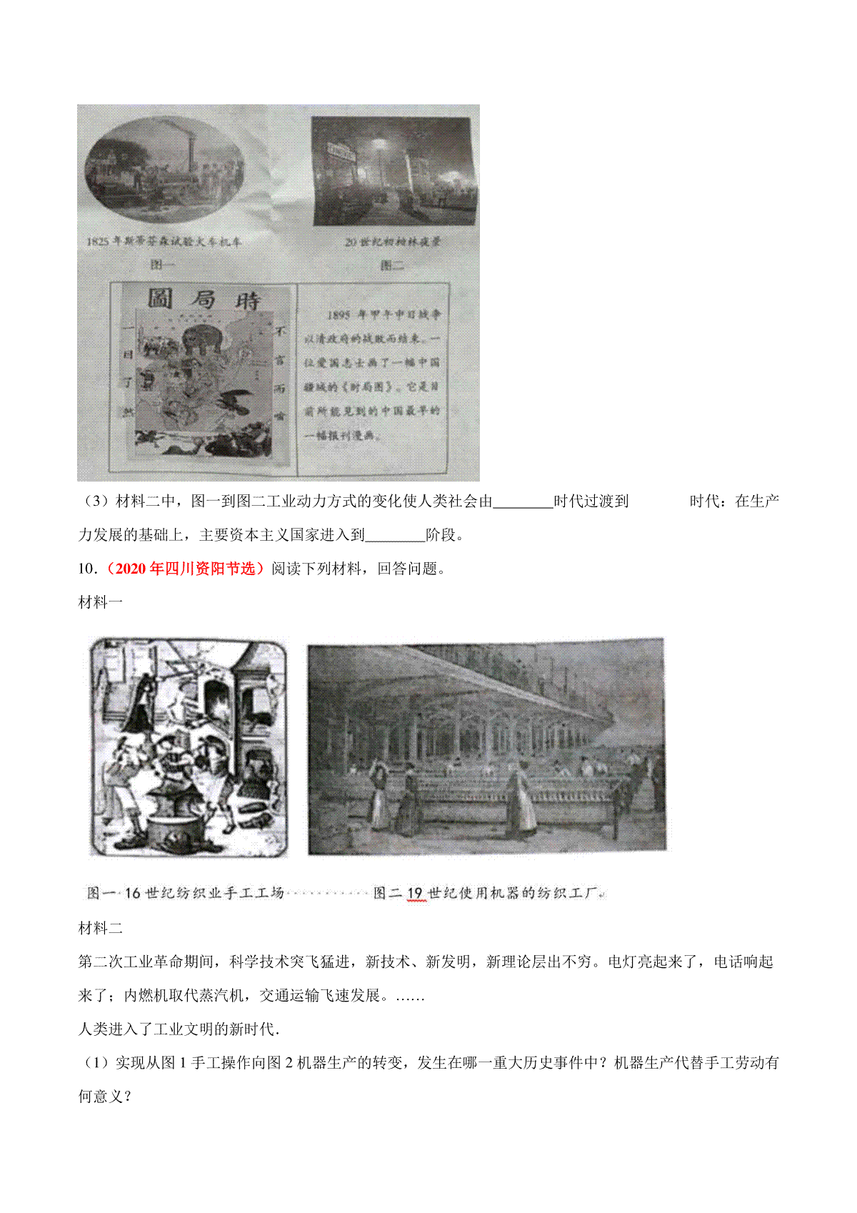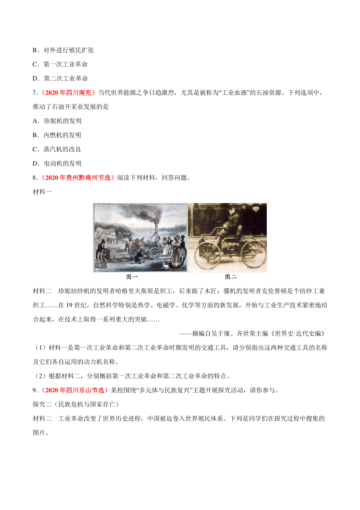 一、专题24 工业革命(第01期)-2020年中考历史真题分项汇编(原卷版)