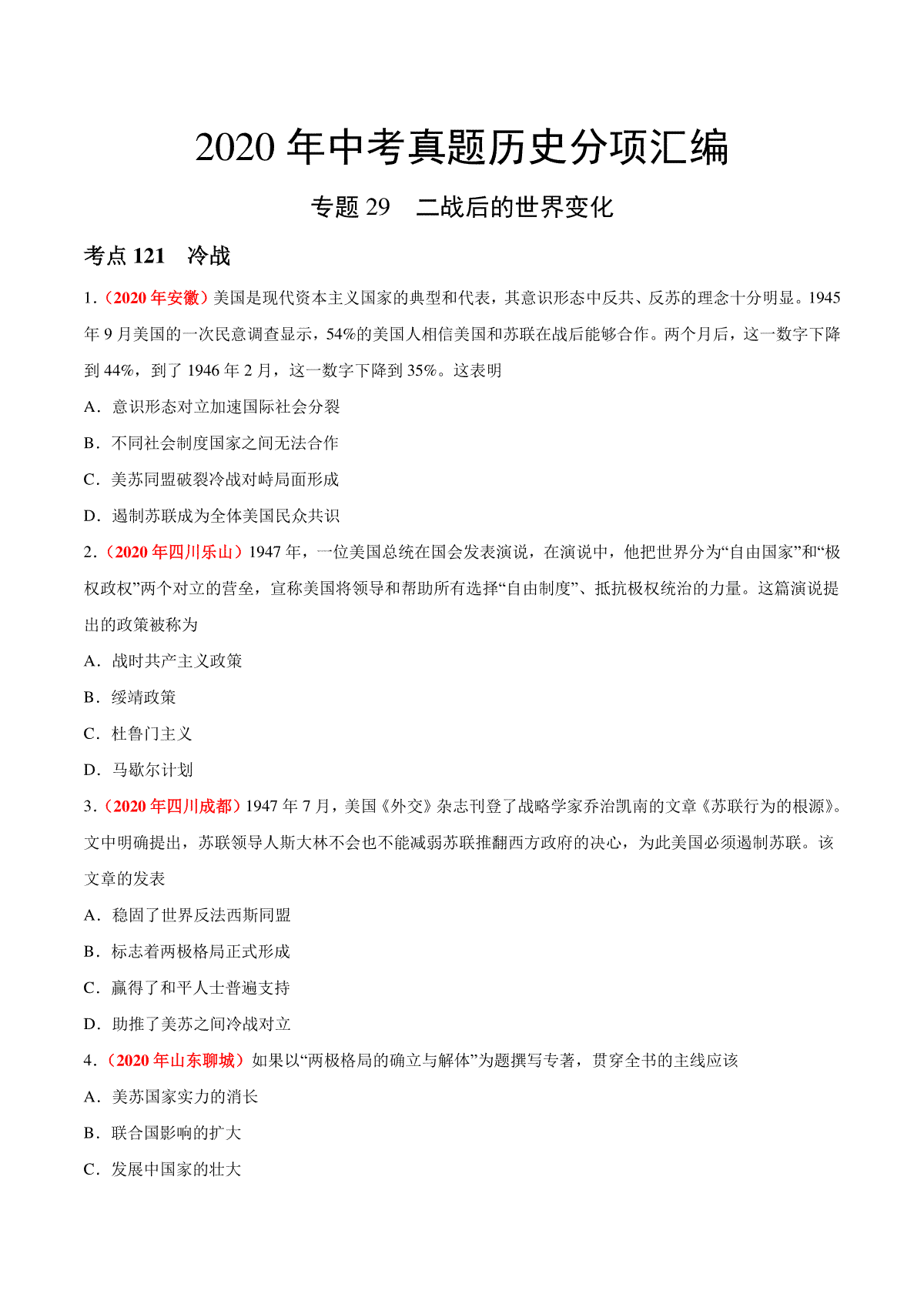 1.专题29 二战后的世界变化(第01期)-2020年中考历史真题分项汇编(原卷版)