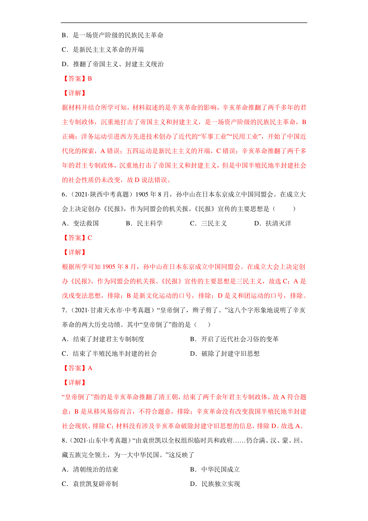 如果你想下载专题09 资产阶级革命与中华民国的建立(第01期)(解析版)DOC或PDF版,请点击本文末链接!