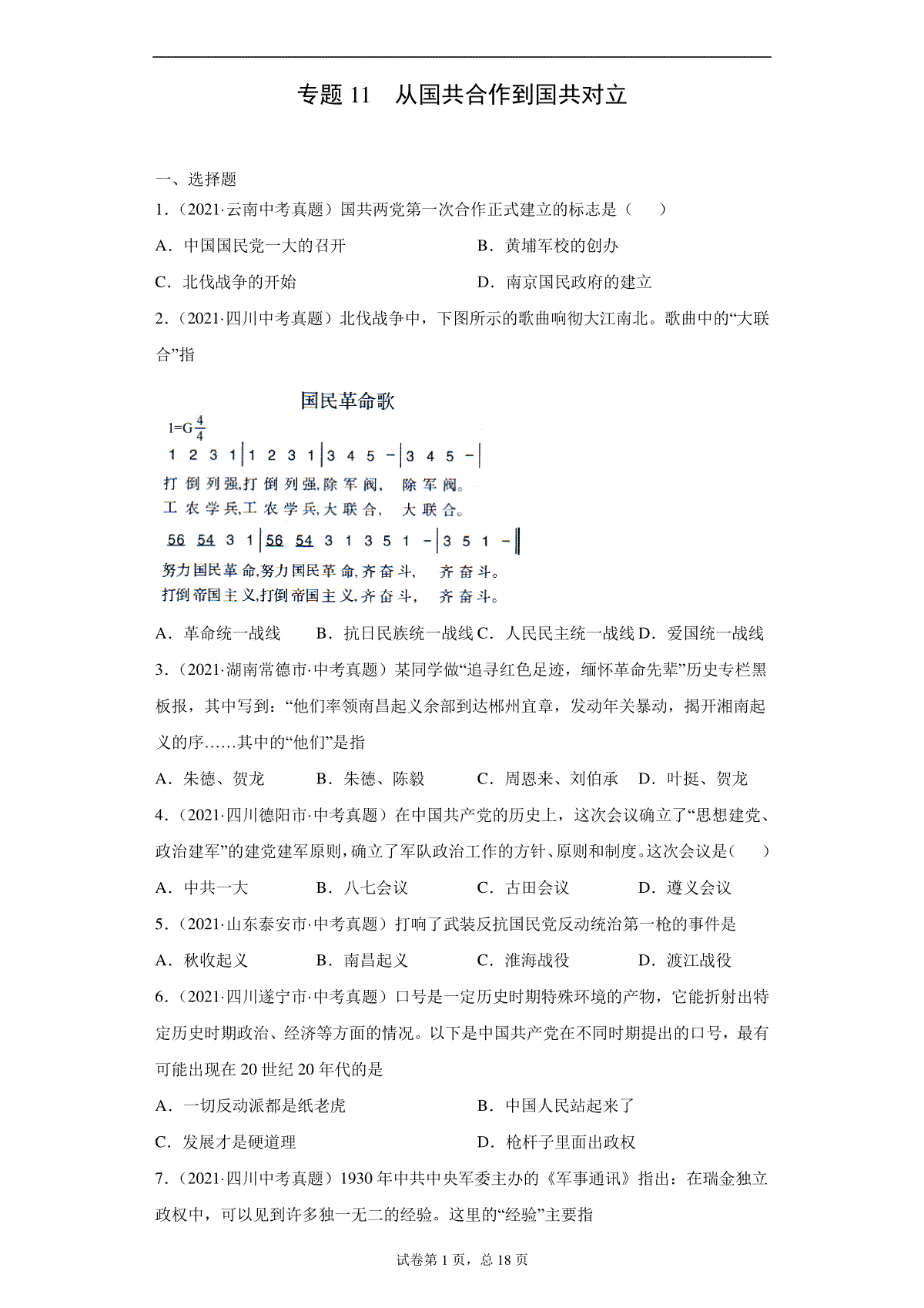 如果你想下载专题11 从国共合作到国共对立(第01期)(原卷版)DOC或PDF版,请点击本文末链接!