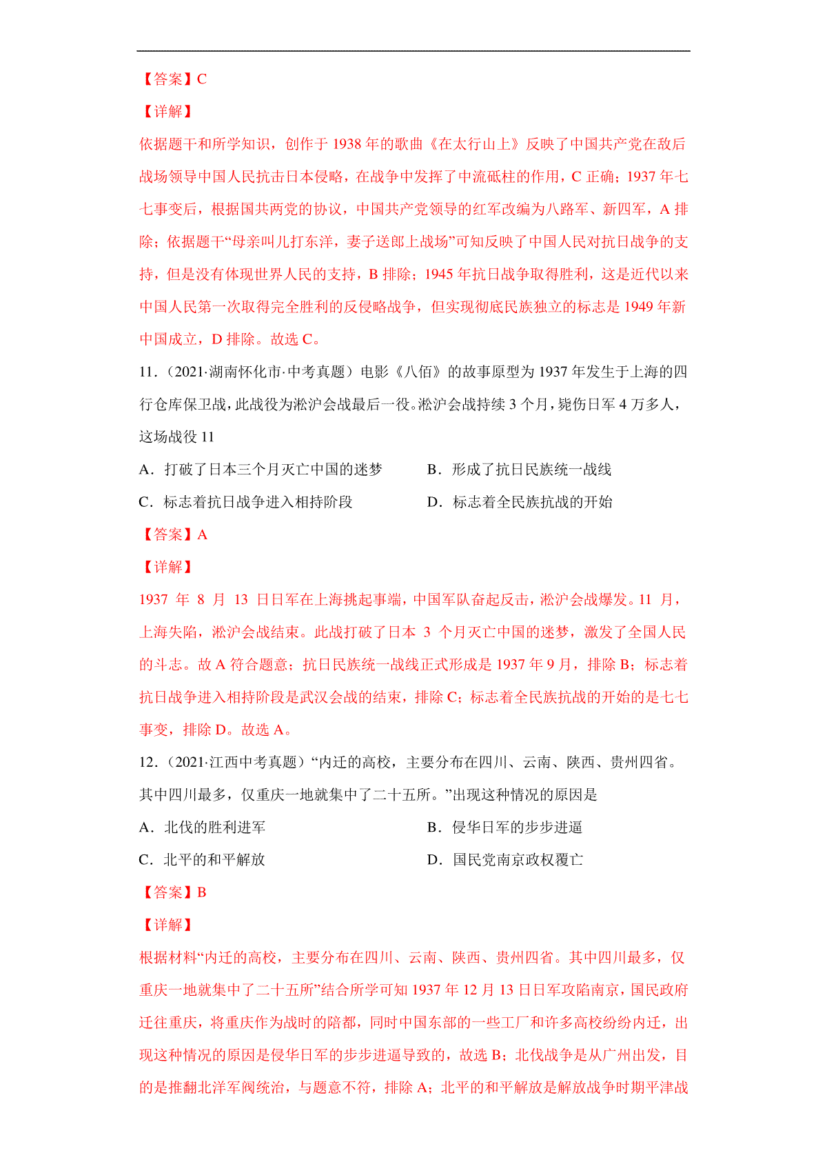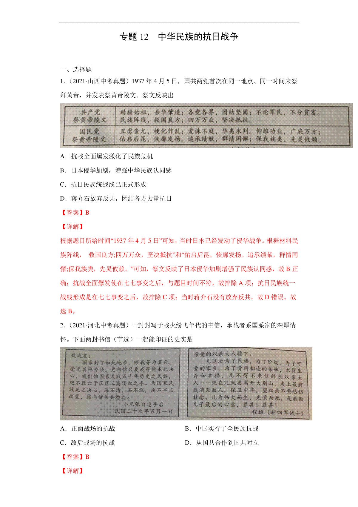 下载专题12 中华民族的抗日战争(第01期)(解析版)PDF格式或doc