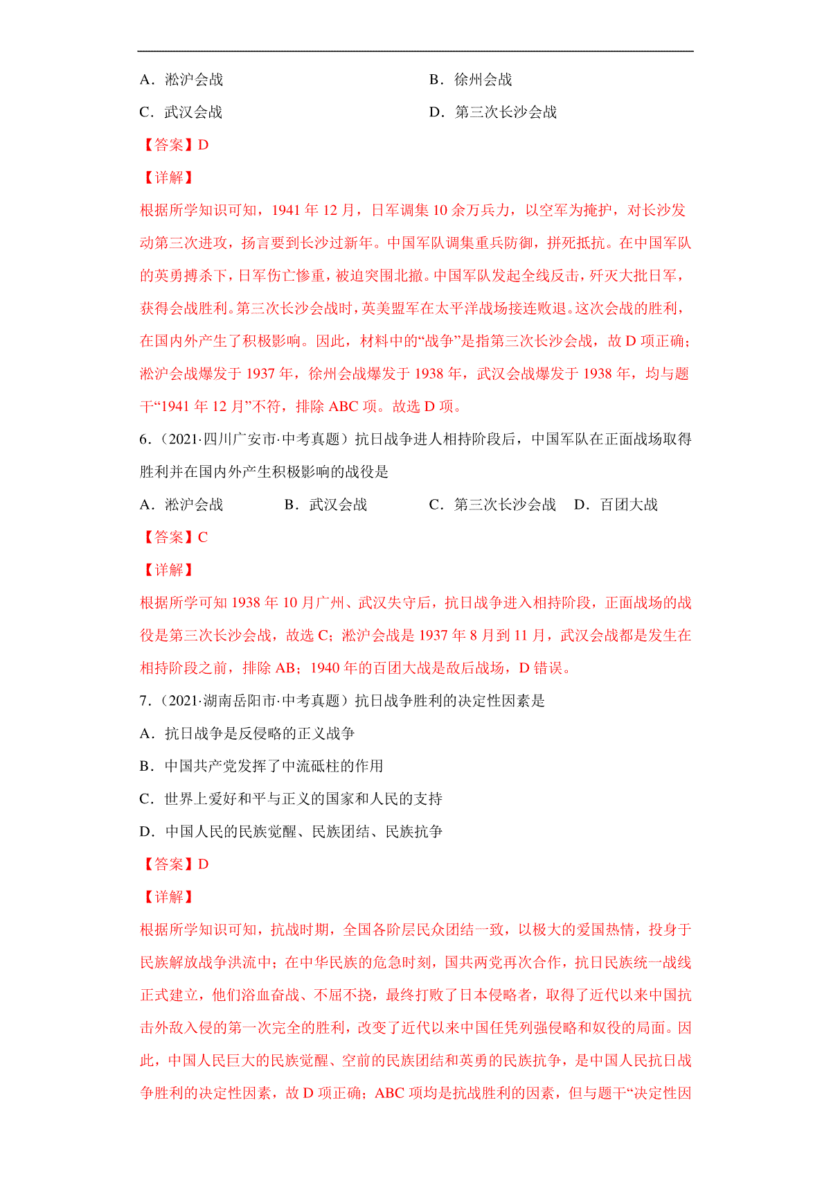 一、专题12 中华民族的抗日战争(第01期)(解析版)