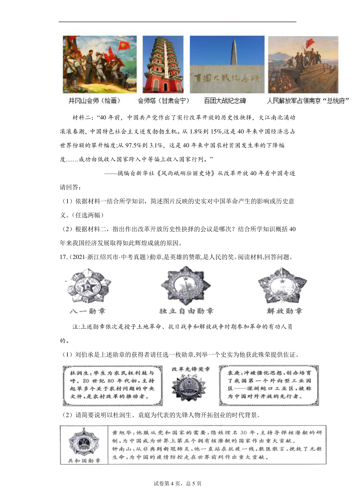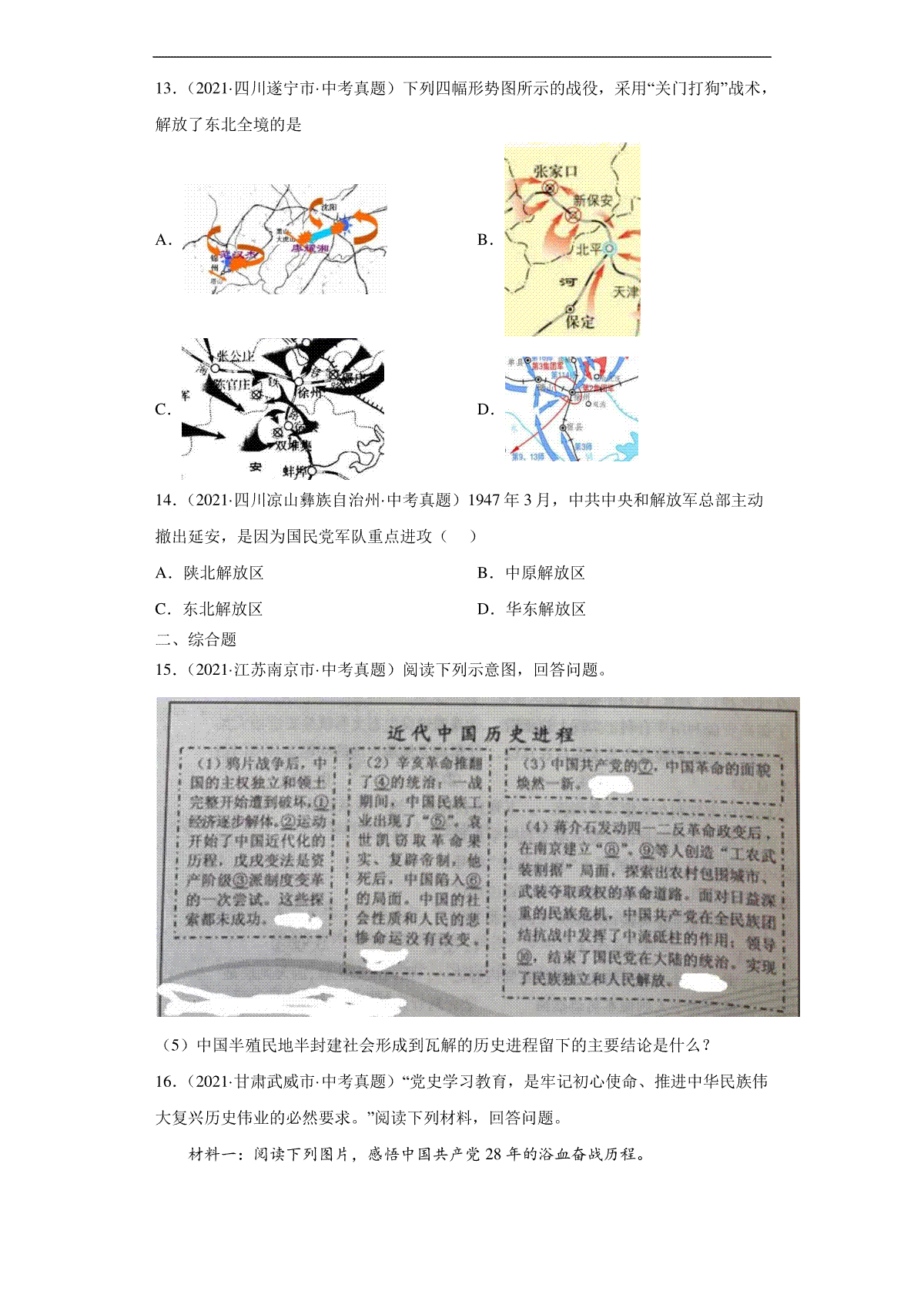 2021年安徽省历史中考试题及答案