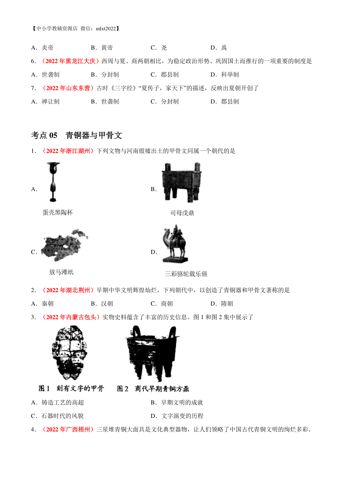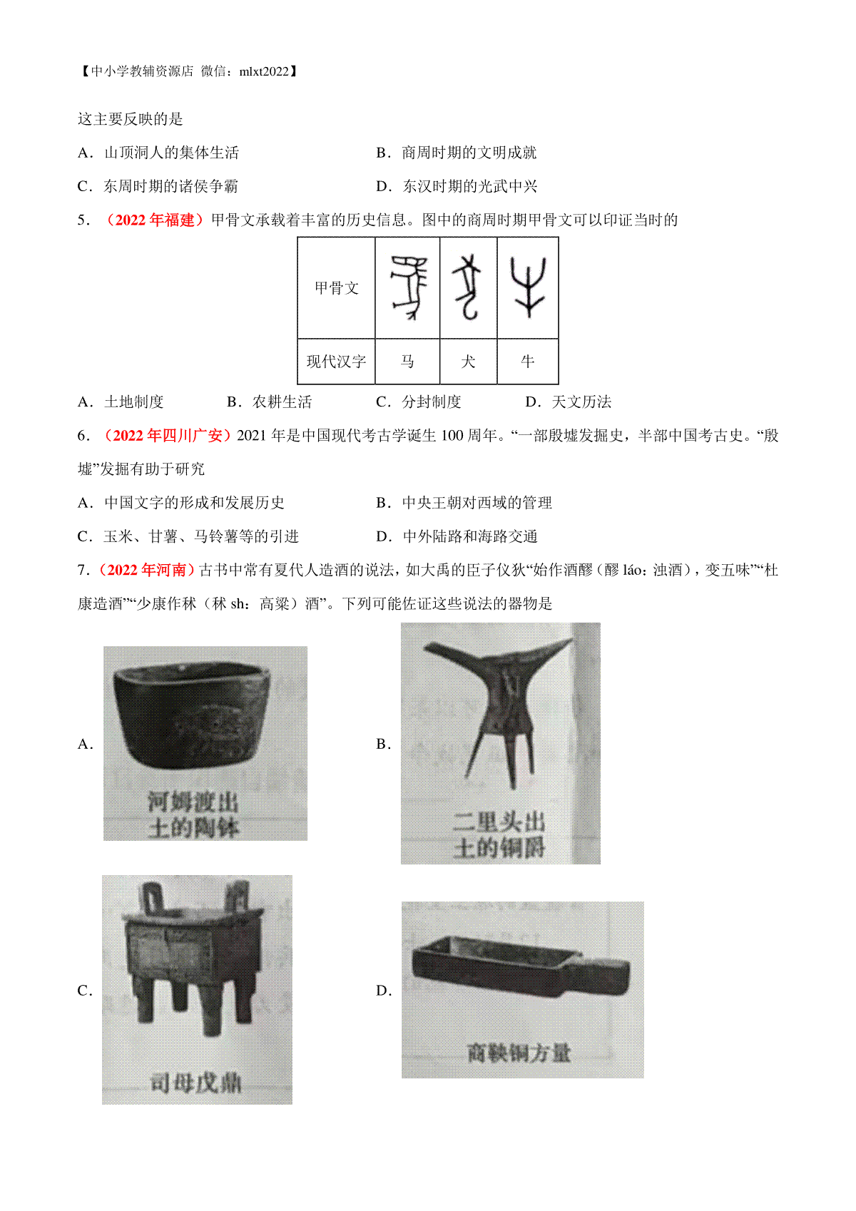 一、专题01 中国境内人类的活动、早期国家与社会变革(第02期)-2022年中考历史真题分项汇编(全国通