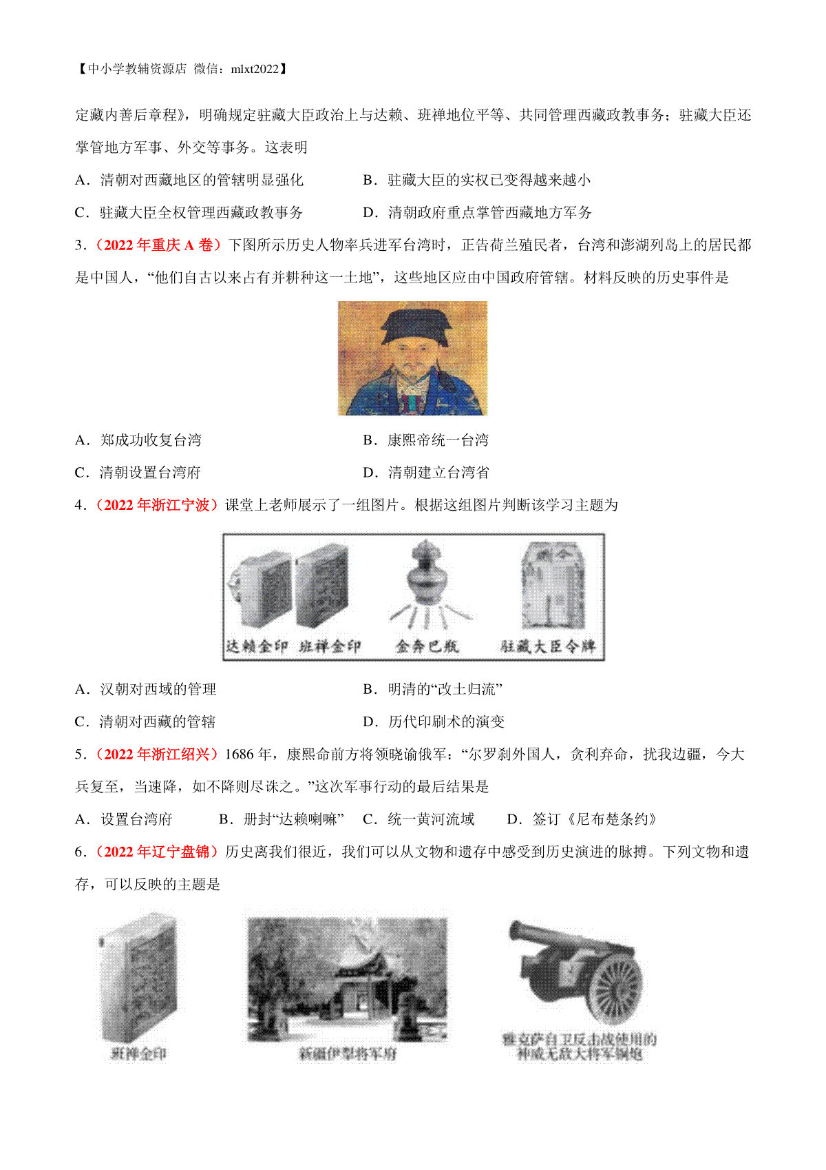 如果你想下载专题06 统一多民族国家的巩固与发展(第02期)-2022年中考历史真题分项汇编(全国通用)(原卷版DOC或PDF版,请点击本文末链接!