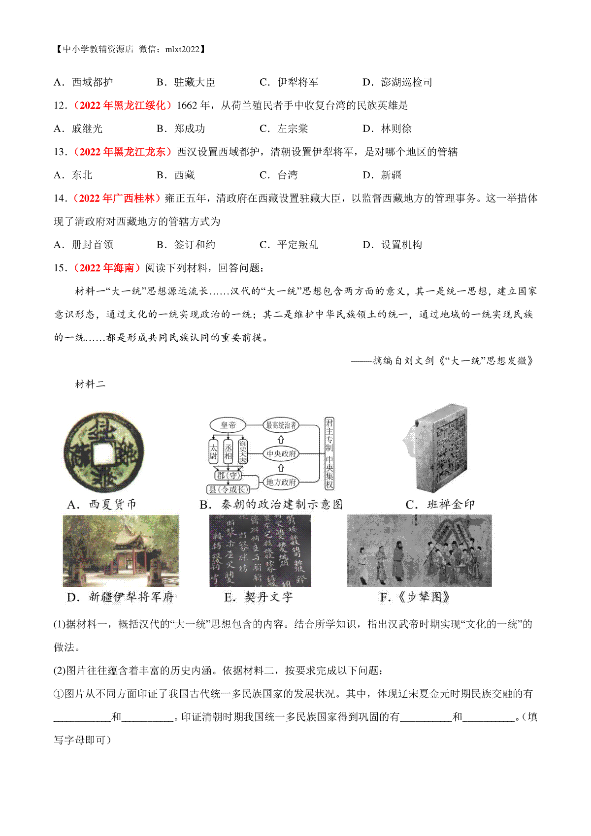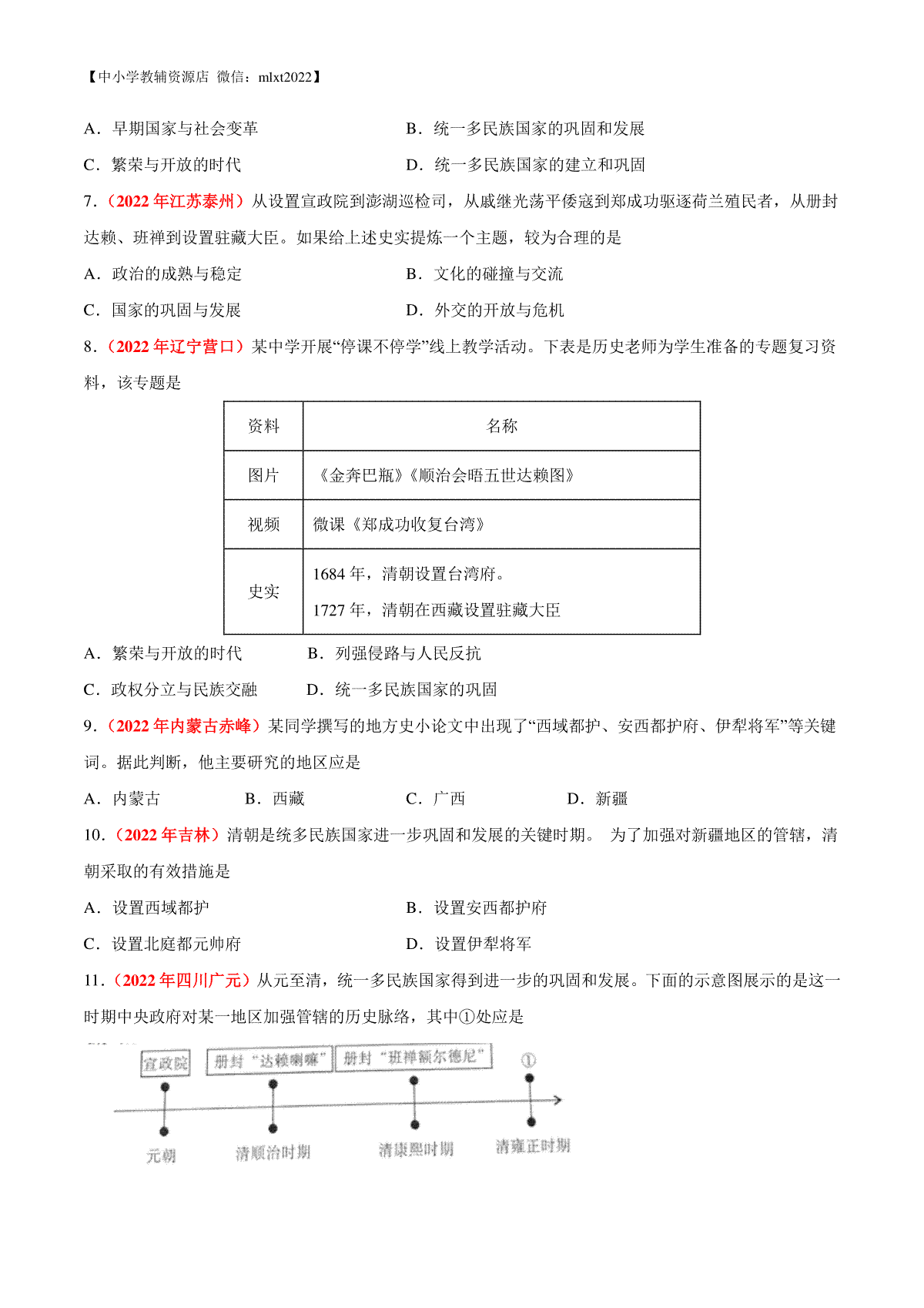 一、专题06 统一多民族国家的巩固与发展(第02期)-2022年中考历史真题分项汇编(全国通用)(原卷版