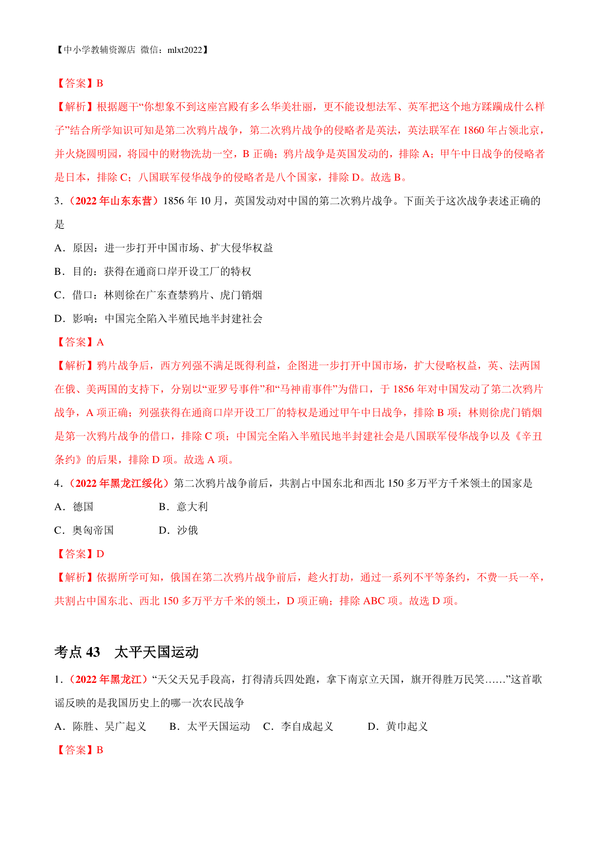 一、专题07 中国开始沦为半殖民地半封建社会(第02期)-2022年中考历史真题分项汇编(全国通用)(解