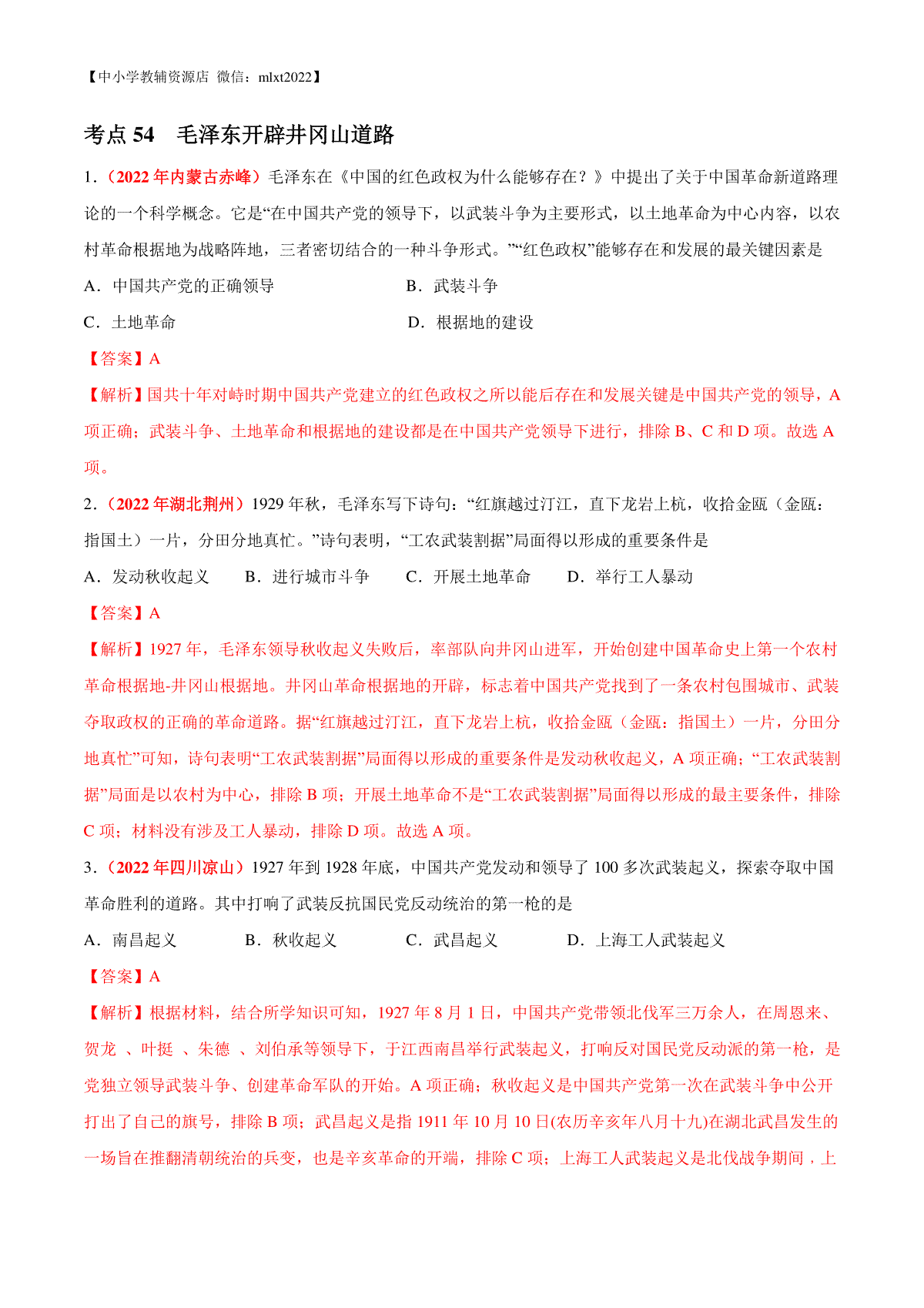 如果你想下载专题11 从国共合作到国共对立(第02期)-2022年中考历史真题分项汇编(全国通用)(解析版)DOC或PDF版,请点击本文末链接!