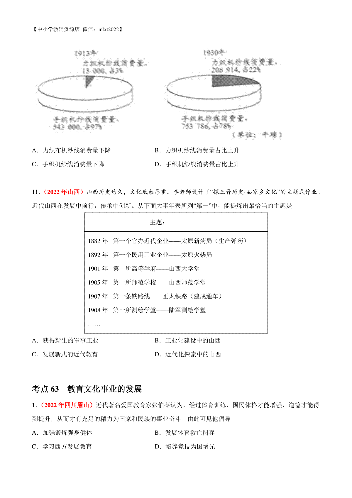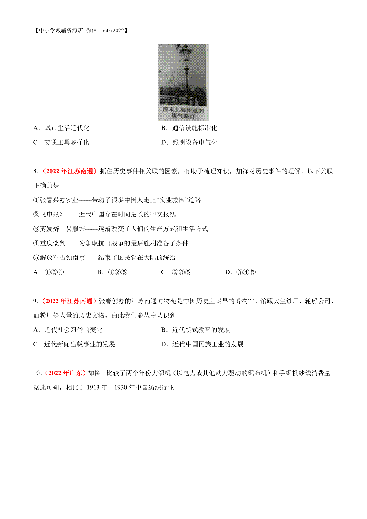 下载专题14 近代经济、社会生活与教育文化(第02期)-2022年中考历史真题分项汇编(全国通用)(原卷PDF格式或doc