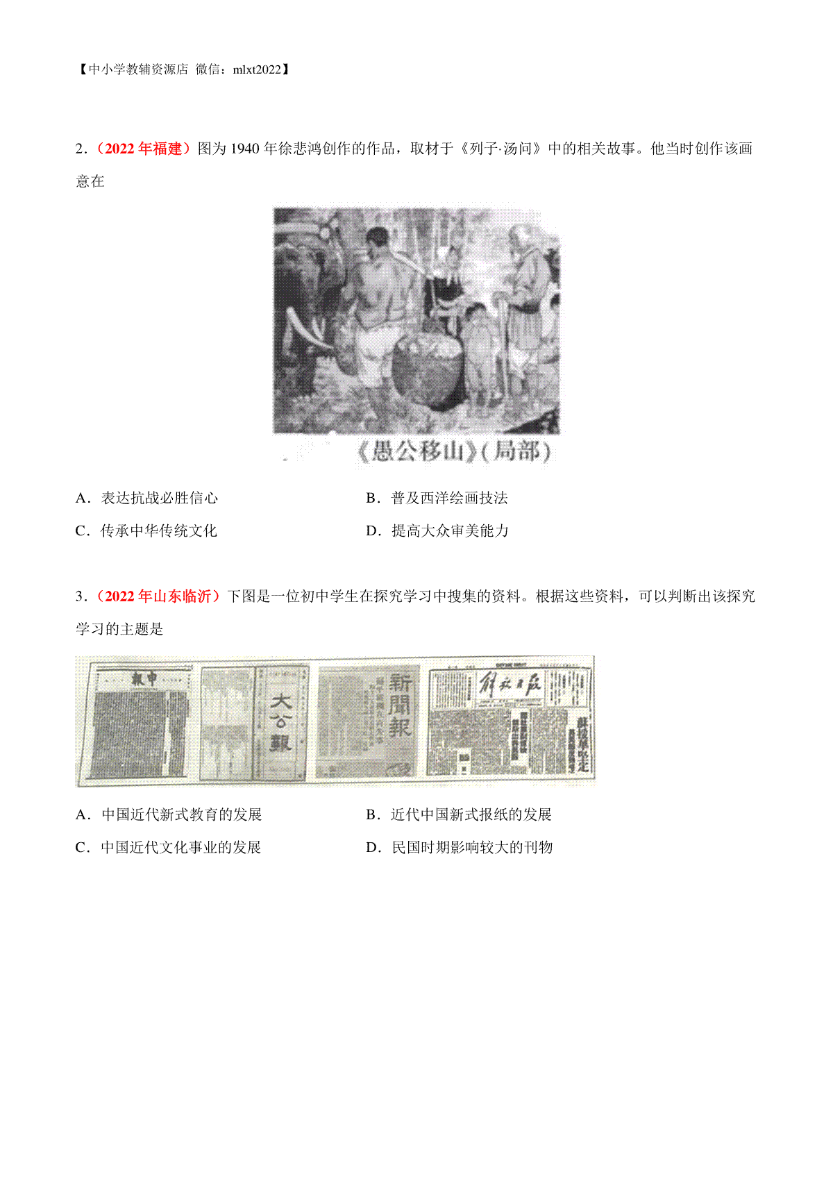 如果你想下载专题14 近代经济、社会生活与教育文化(第02期)-2022年中考历史真题分项汇编(全国通用)(原卷DOC或PDF版,请点击本文末链接!