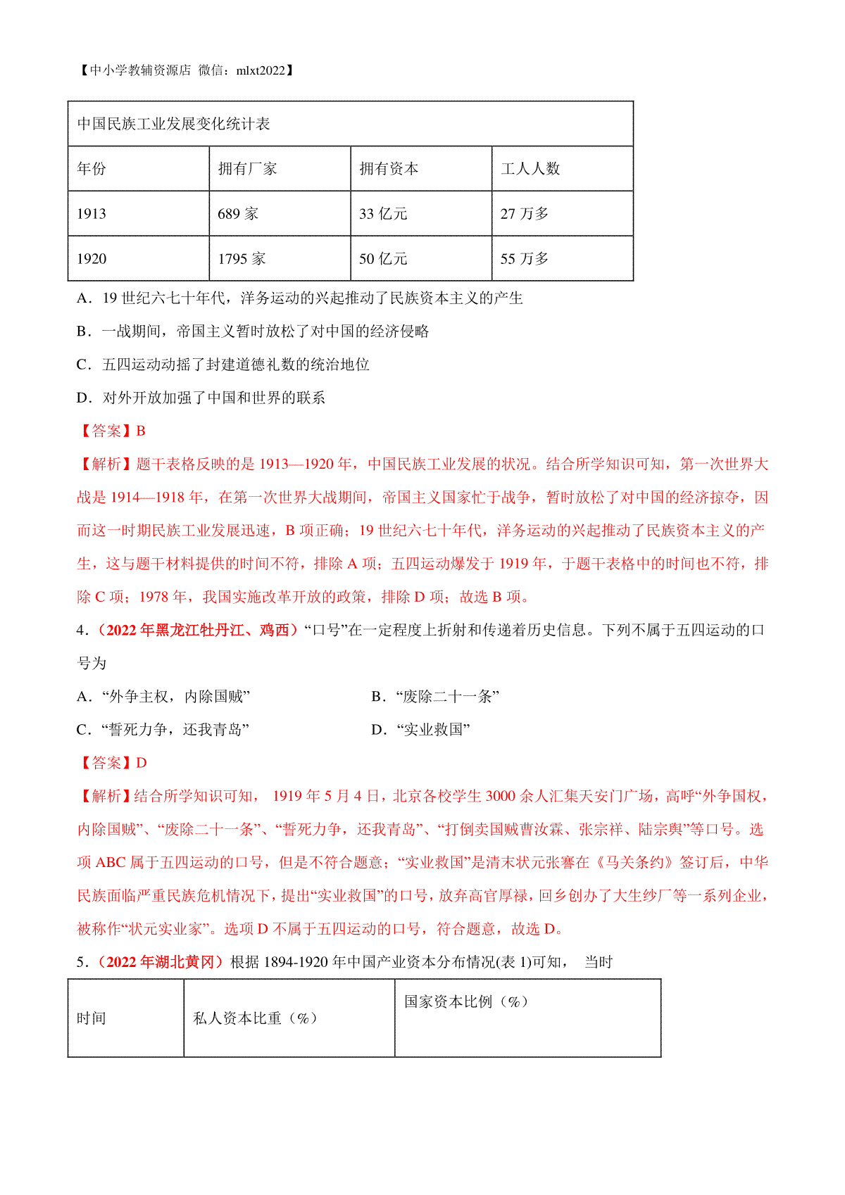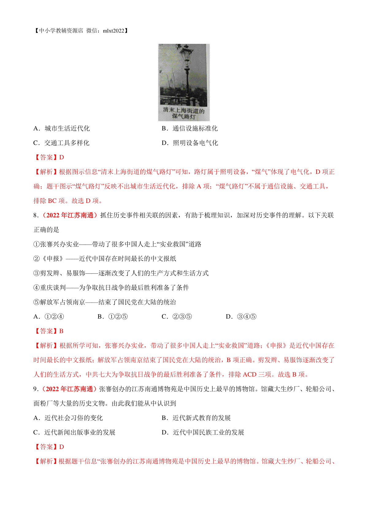 一、专题14 近代经济、社会生活与教育文化(第02期)-2022年中考历史真题分项汇编(全国通用)(解析