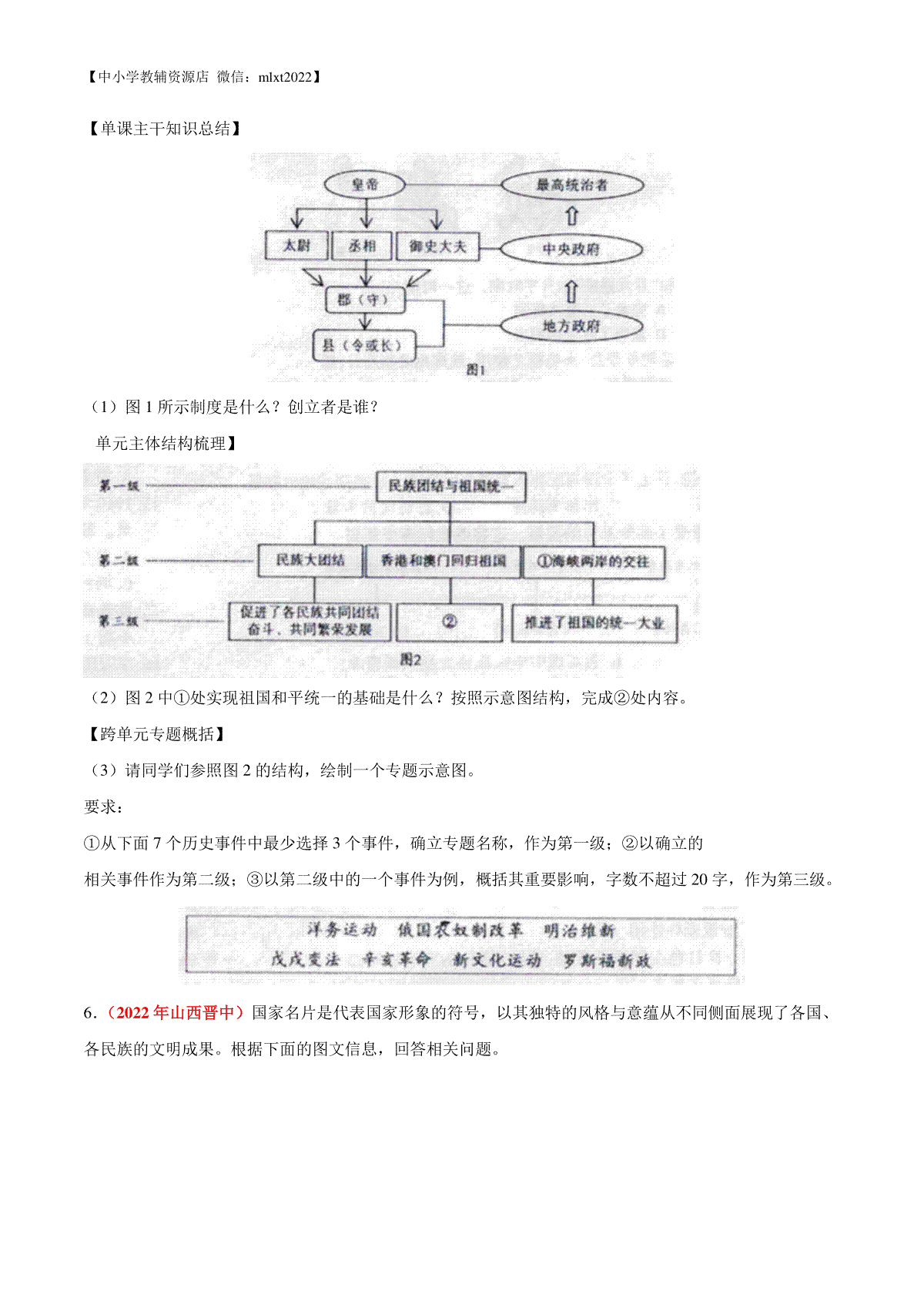 1.专题18 民族团结与祖国统一、国防建设与外交成就(第01期)-2022年中考历史真题分项汇编(全国通