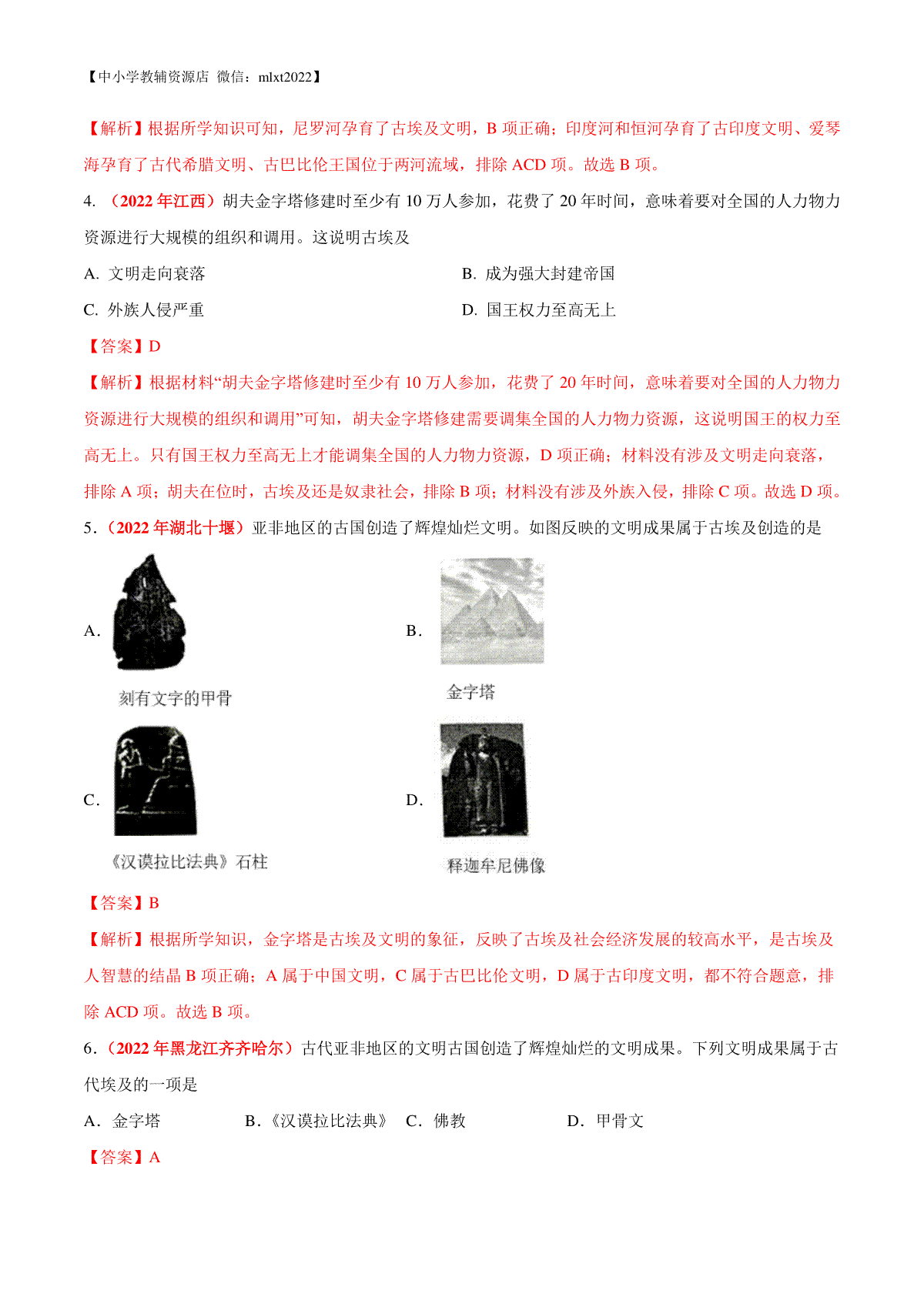 1.专题20 古代亚非文明和欧洲文明(第01期)-2022年中考历史真题分项汇编(全国通用)(解析版)